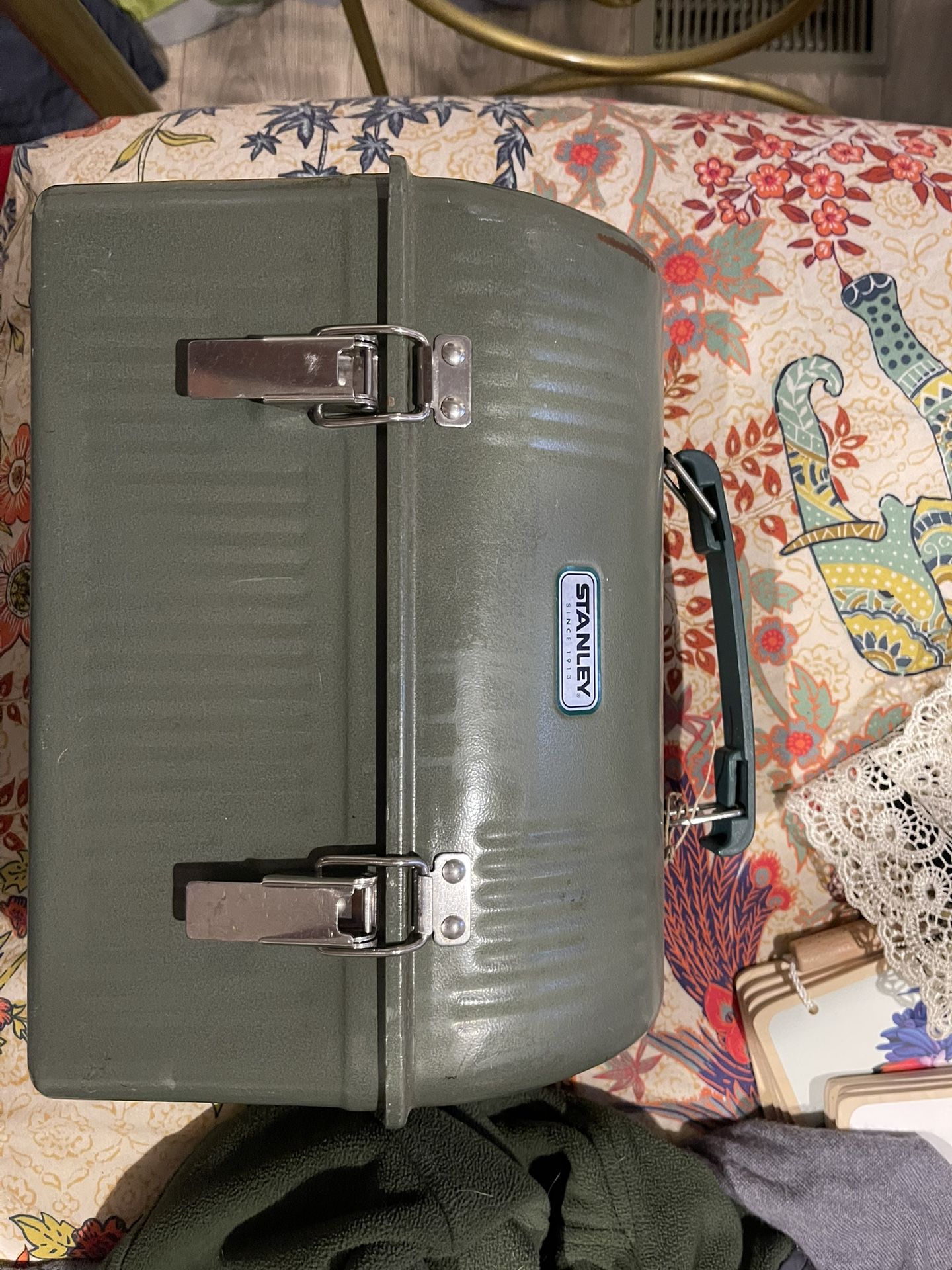 Robust metal lunchbox by Stanley. Equipped with strong latches and a comfortable handle.