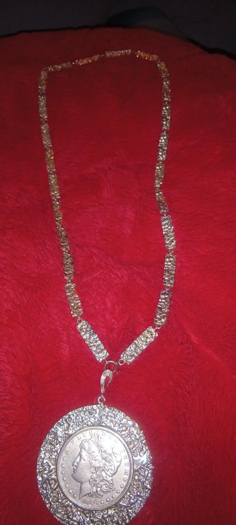 1886.. O Morgan Silver Dollar .Chain .Made Out Of Coin Silver.26 In ..129 Gram