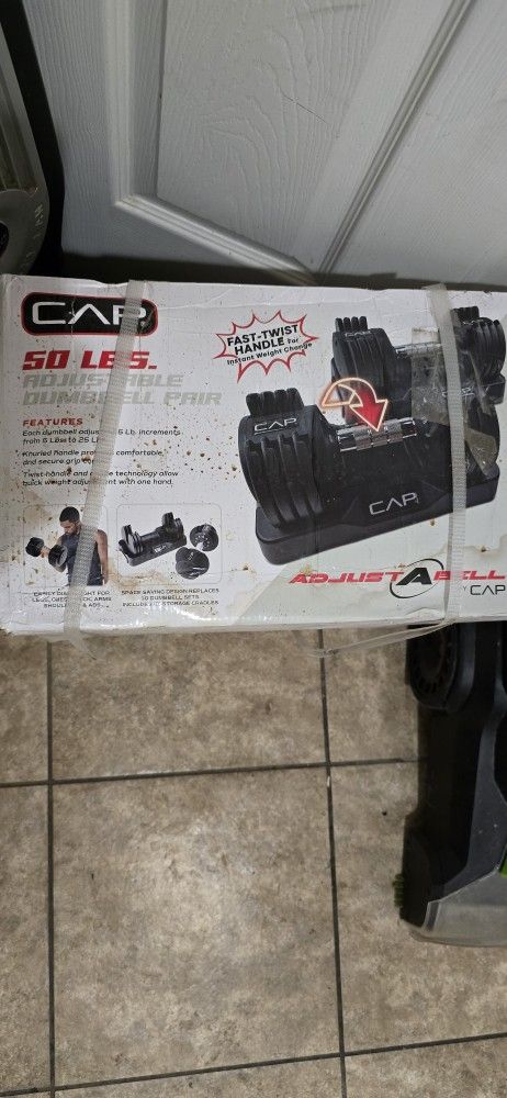 This set features a "Fast-Twist Handle" for quick weight changes. Each dumbbell can be adjusted from 5 lbs to 25 lbs in 5 lb increments