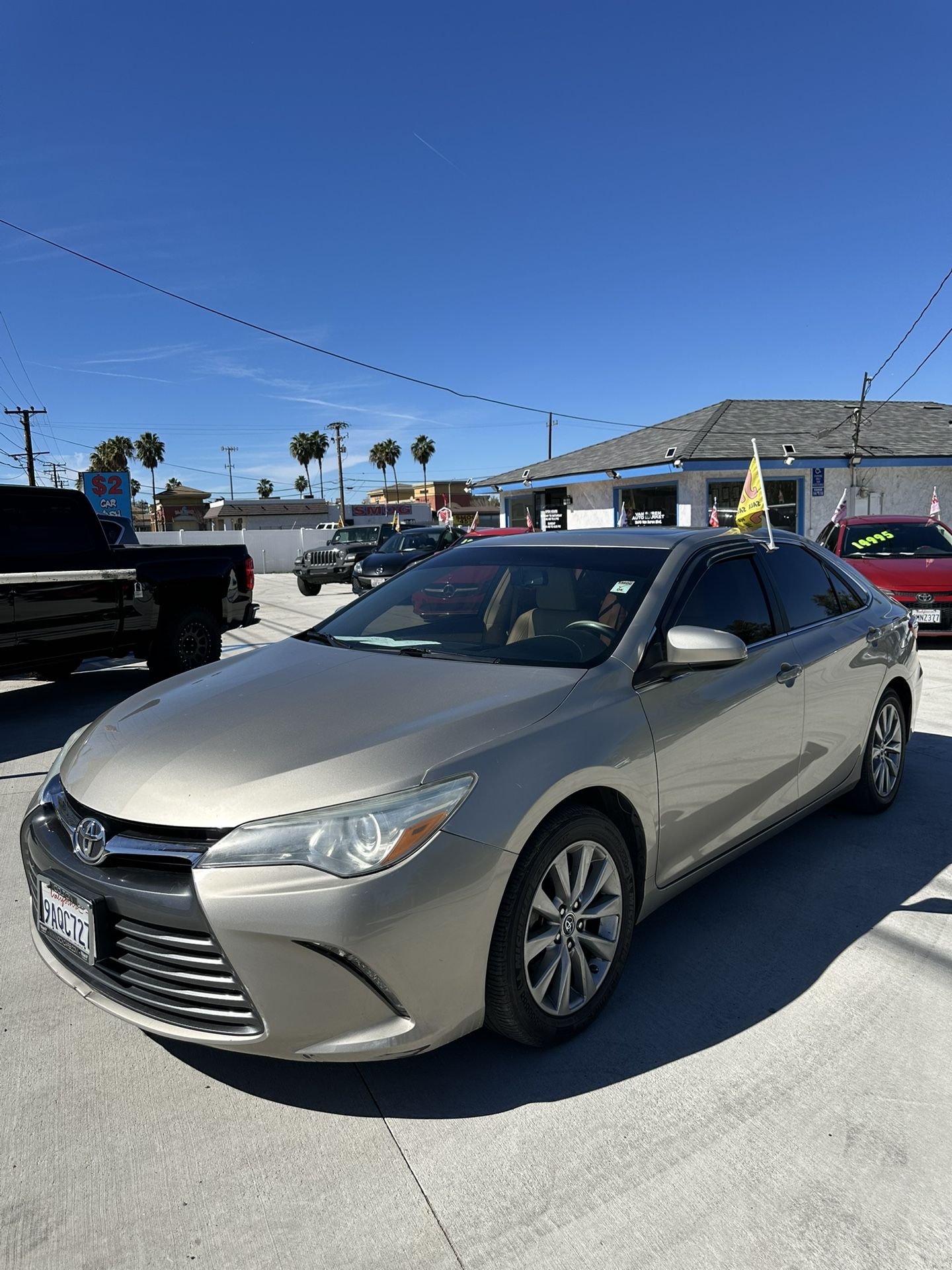2015 TOYOTA CAMRY XLE loaded platinum 4 door suoer sedan looking and running great! Clean CARFAX and Clean TITLE, automatic transmission, power steering and brakes, power windows and door locks, cold 🥶 air conditioning front and rear, aux and Bluetooth ready, great sound system, 4 cyl powerful gas ⛽️ saver, this baby has plush leather interior, power moonroof and heated seats with just 120k+ low low mileage and a steal for $12995 plus tax, plus license, plus smog, plus doc fees if you pay green cash 🤑 no silly offers or credit union checks at all or bring 3000 down payment, make a payment plan with us, your time on the same job is your credit score, most qualify! Finance plans are based off of 2995 more than the cash price, plus add tax, plus license, plus smog, plus doc and financial fees!