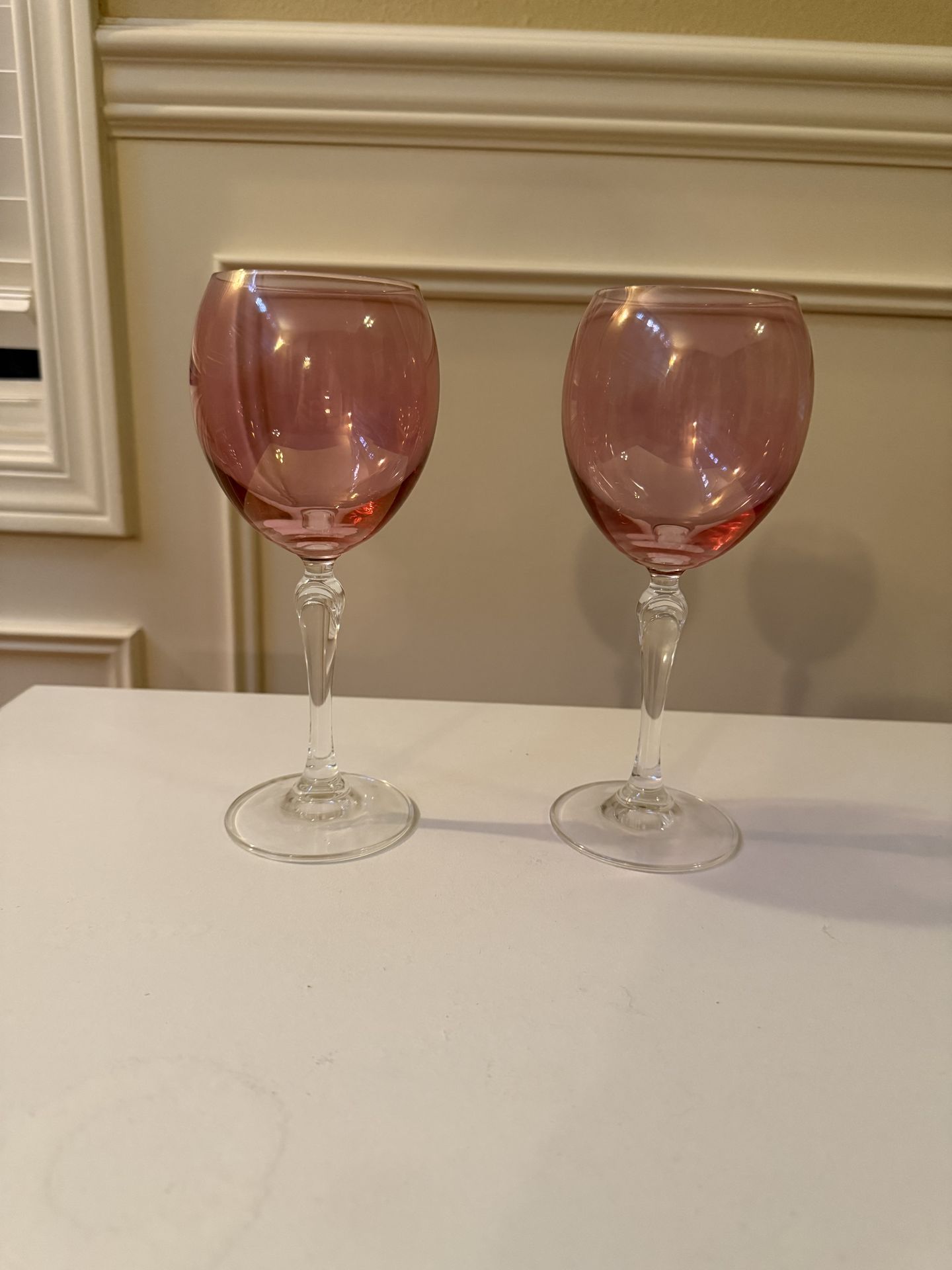Vintage Bohemia rose crystal wine glasses with clear ornate stems in great condition