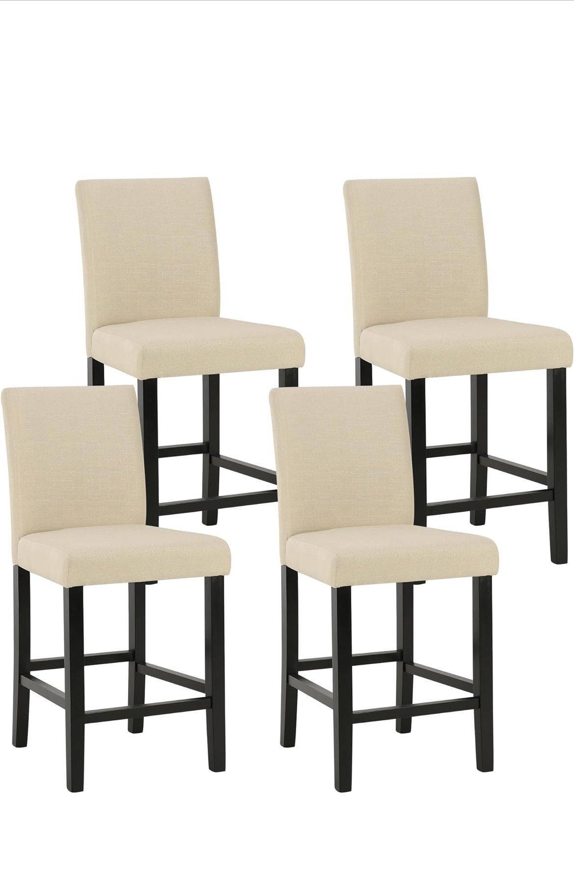 Classic 24 Inches Counter Height Stools Upholstered Bar Stools with Solid Wood Legs Set of 4(Fabric Beige)