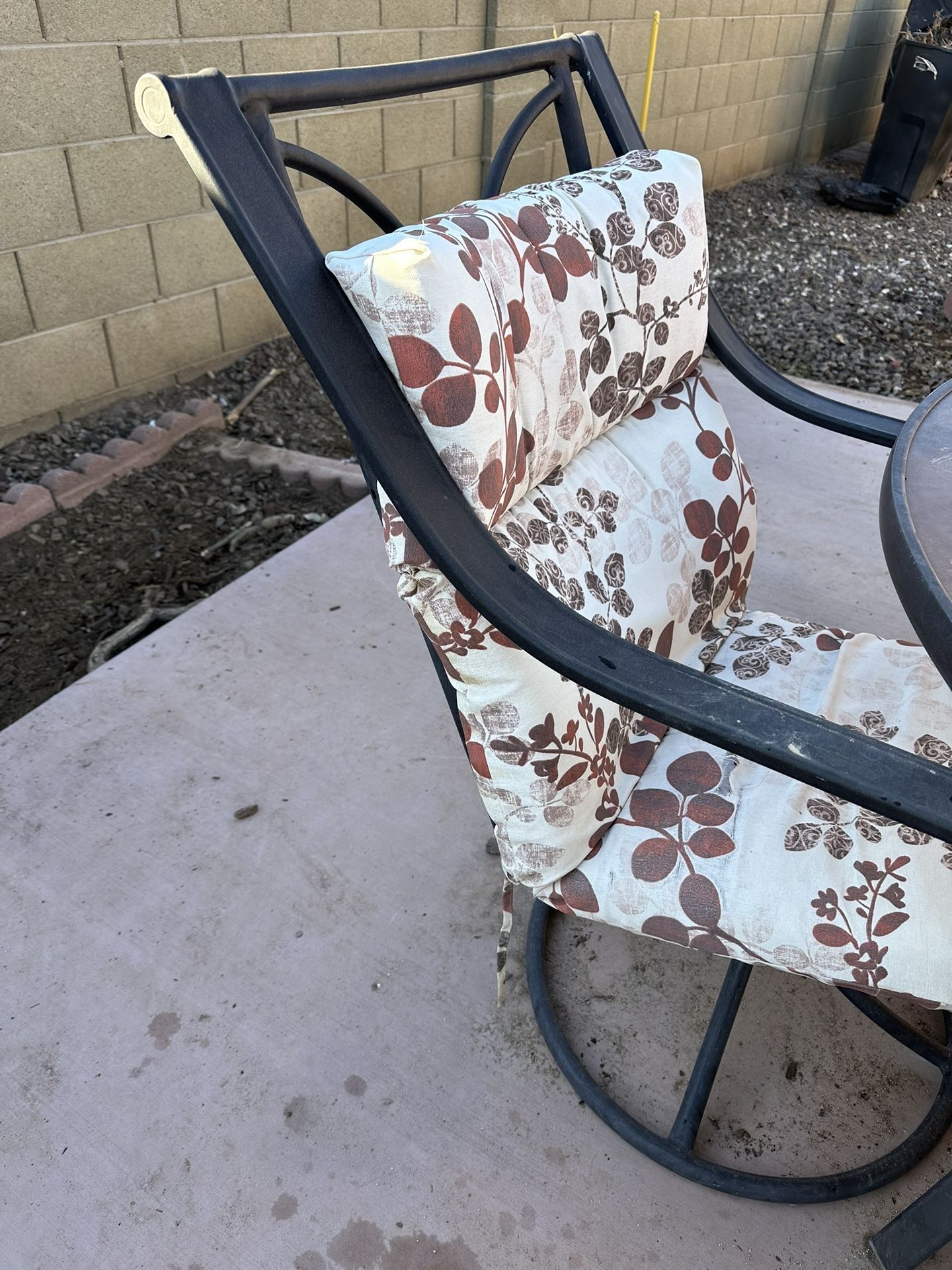 Chairs and table are in great condition, will need to replace cloth covers due to weather damage but will leave them on to protect chair until pick up or you can have them. :) Pick up only as I do not have a vehicle to deliver