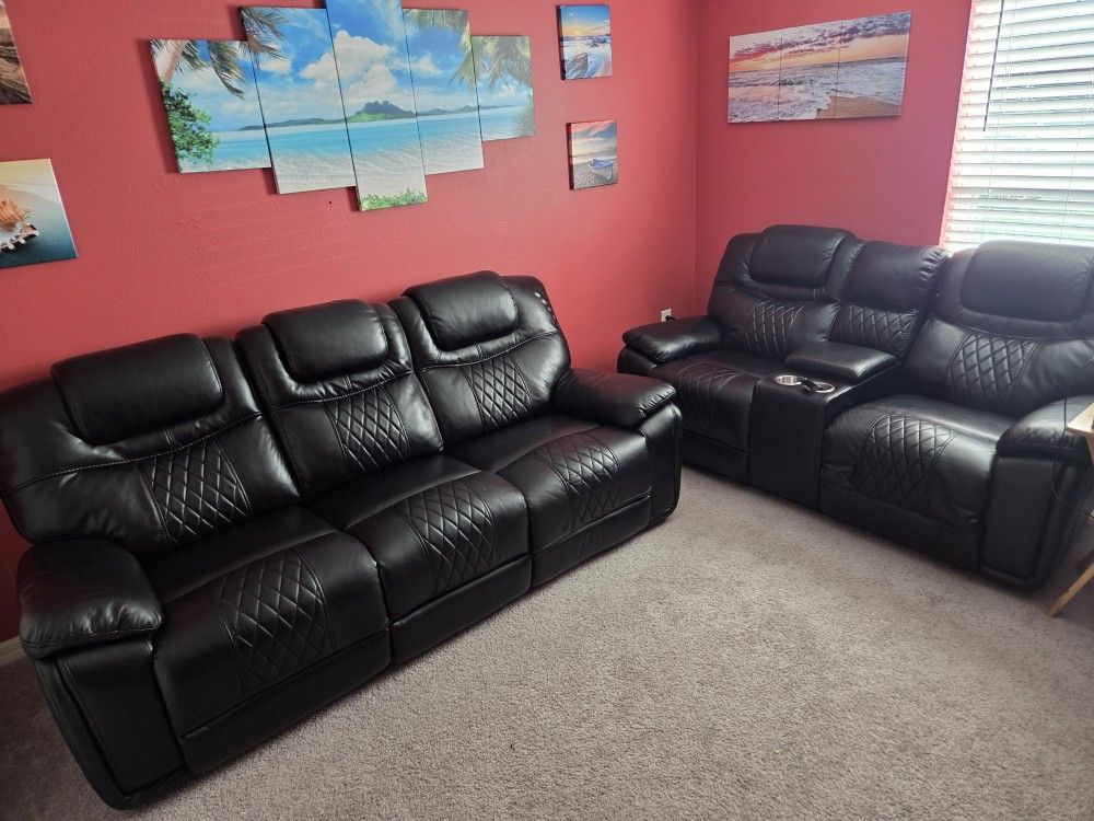 Perfect for apartments, living rooms, or office lounge. Selling both couches both for $380. Donβt want it anymore. Real leather. - Condition: Good β no major tears or stains - Color: Classic black, easy to match with any dΓ©cor - Size: Seats 2 comfortably - Comfort: Cushions are supportive yet cozy - Style: Sleek design that fits modern or traditional spaces . Real Leather. Both recline ποΈ 3-Seat Reclining Sofa (Estimated) Width: 85β92 inches (7β7.6 ft) Depth: 38β40 inches Height: 38β41 inches --- ποΈ 2-Seat Reclining Loveseat w/ Console (Estimated) Width: 75β82 inches (6.2β6.8 ft) Depth: 38β40 inches Height: 38β41 inches Hi