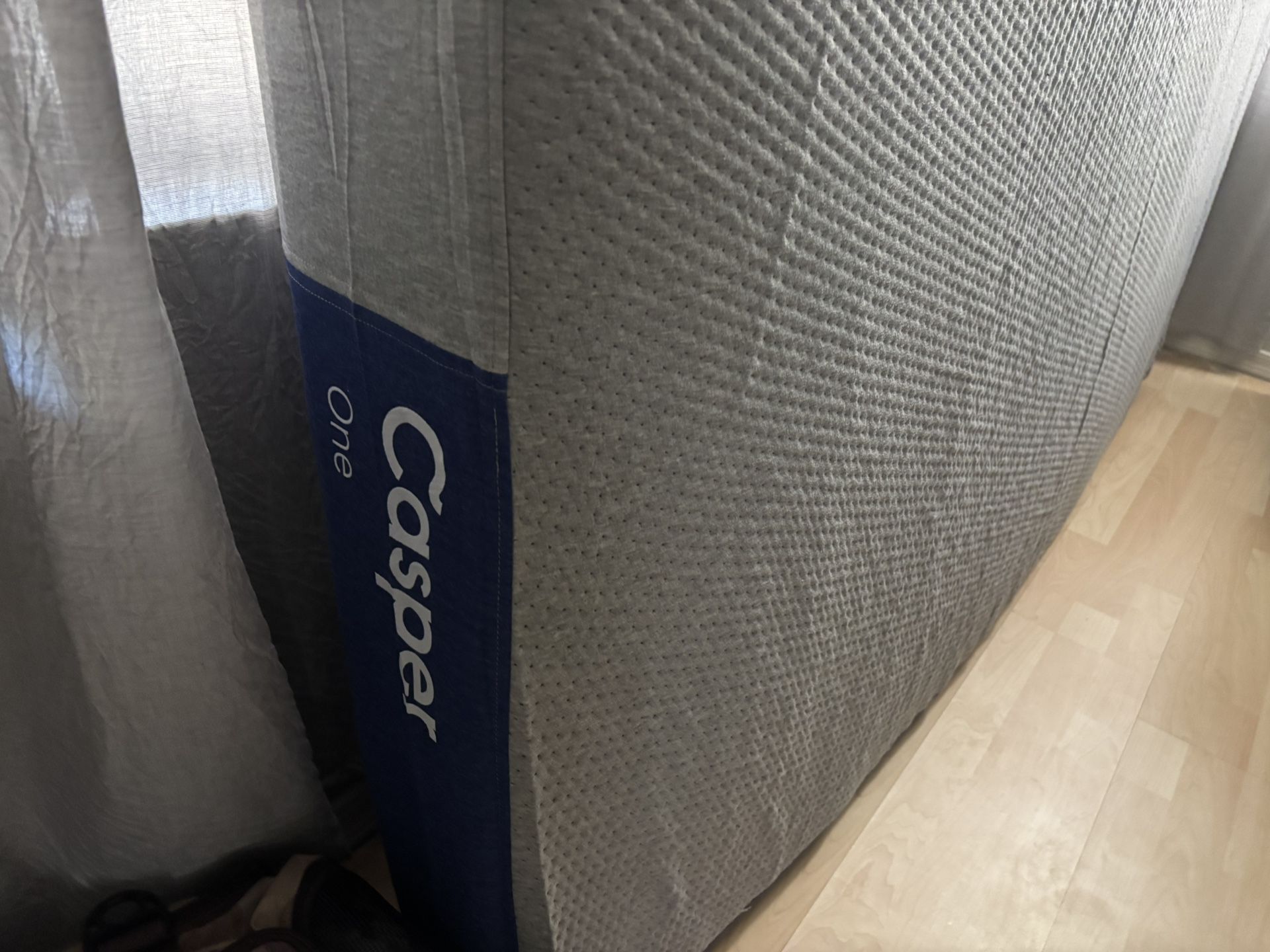 Brand new Casper king size mattress. This mattress currently sells at Costco for 799. Took it out of the box but it didn’t fit my bed frame because it’s a California king frame so I bought a different mattress that day. Says it’s medium firmness