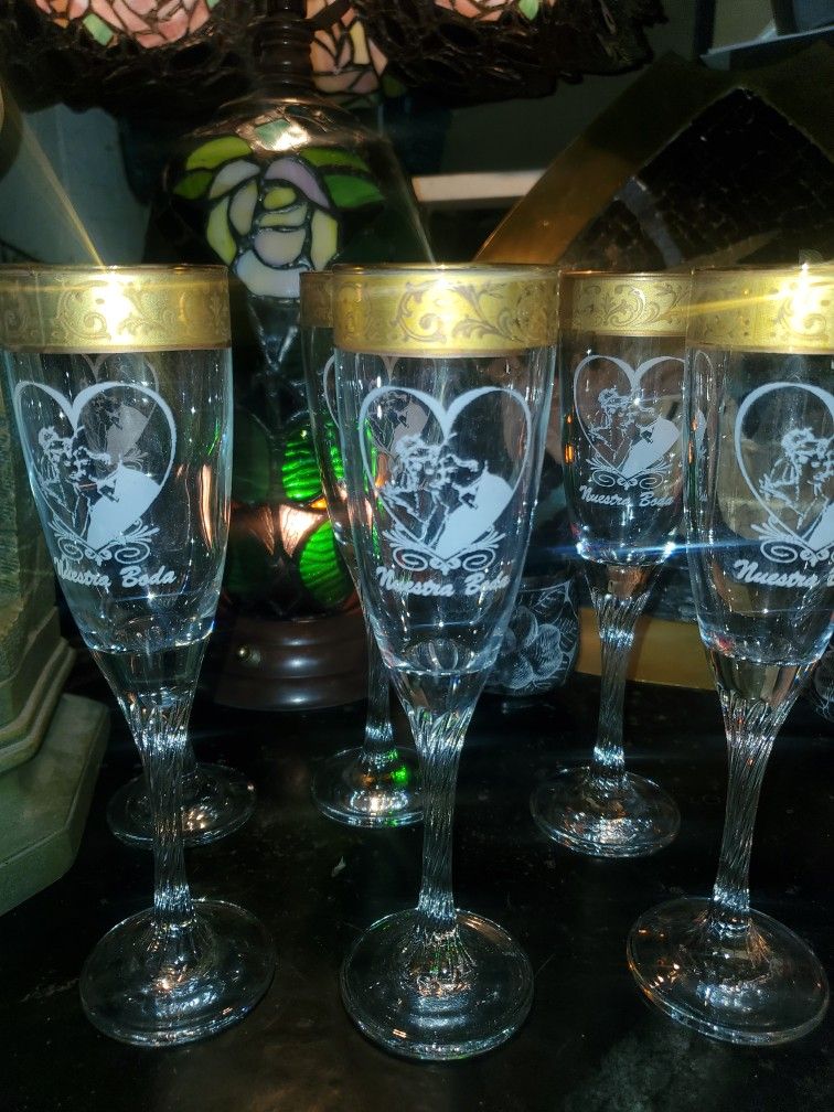 Set Of 6 Italian Boda Oro Champagne Flutes Gold Trimmed