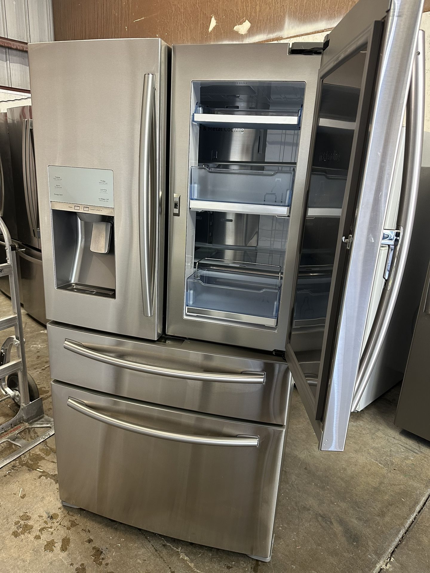 Four Door Samsung fridge works great water and icemaker. Do not work can deliver. Cabinet depth Perfect for someone that wants I really nice refrigera