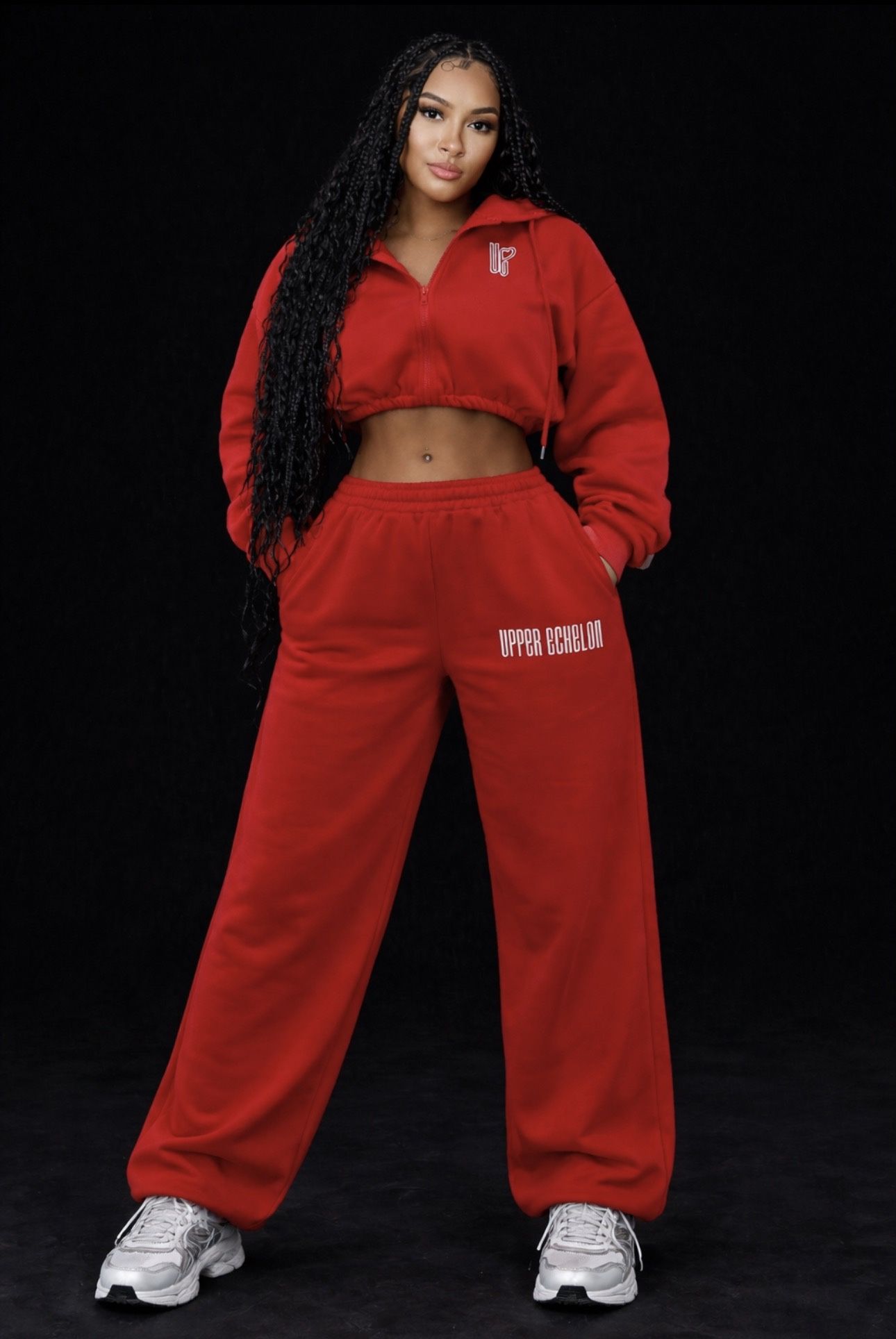 Red Upper Echelon women’s jogger set Color red and white Size Med, Large , XL