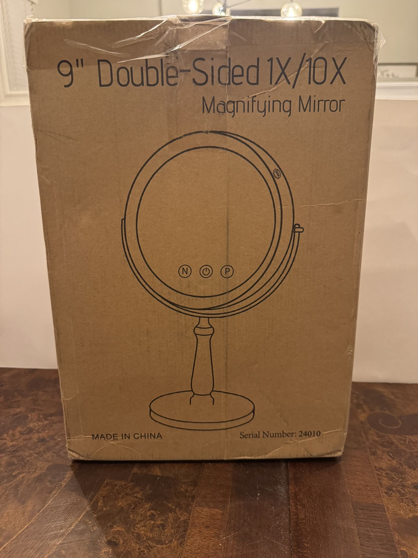9” double sided lighted magnifying mirror 1X-10X