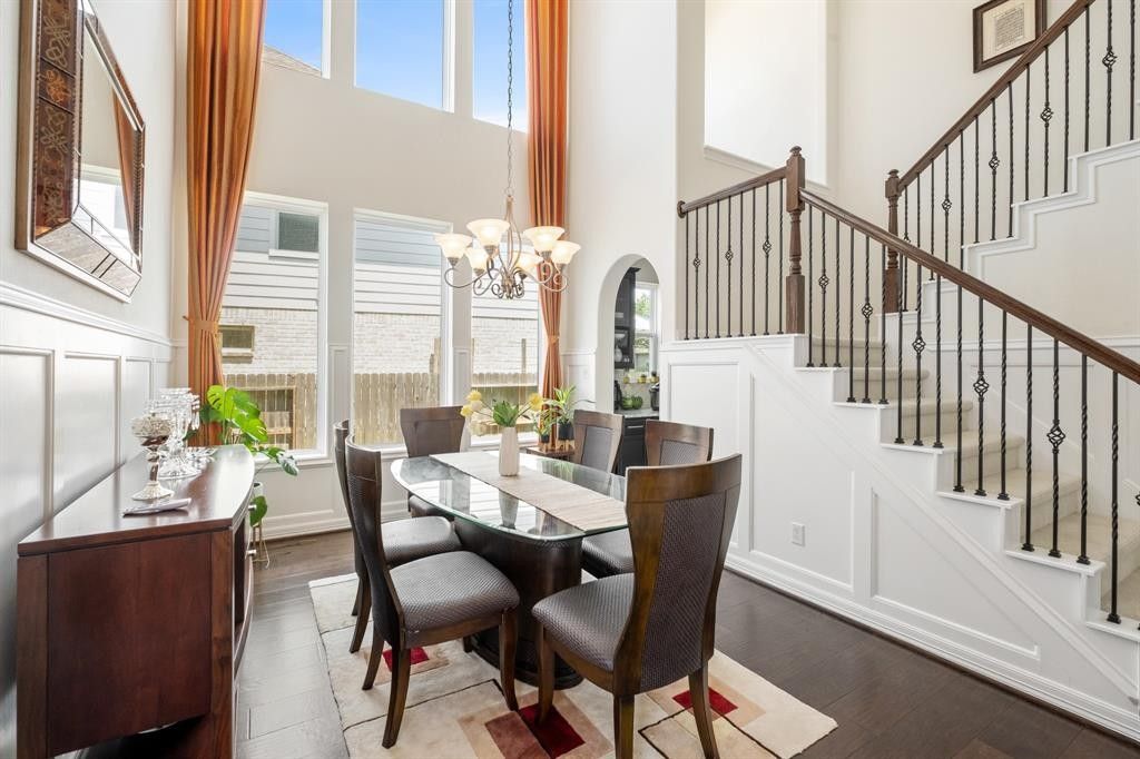 Glass top dining table with leather and wood base and 6 wooden + leather chairs in excellent condition for sale (does not fit the space in our new home). Also available for sale: The beautiful woolen Danish Inspiration modern rug seen in this picture is also available for sale A gorgeous mirror with a Fall themed frame is also available - not featured The buffet table slightly visible here is available on a separate post ( https://offerup.com/redirect/?o=c2ZiYXkuY3JhaWdzbGlzdC5vcmcvZWJ5L2Z1by9kL3BsZWFzYW50b24tc2lkZWJvYXJkLWJ1ZmZldC10YWJsZS83Nzk1MDQ4MTg1Lmh0bWw=) If you are building your dining room from scratch and like what you see in this picture, contact for bundle pricing on all items together Make: dining table and chairs - Ashley furniture Material: Wood base with woven leather wrap Color: Brown