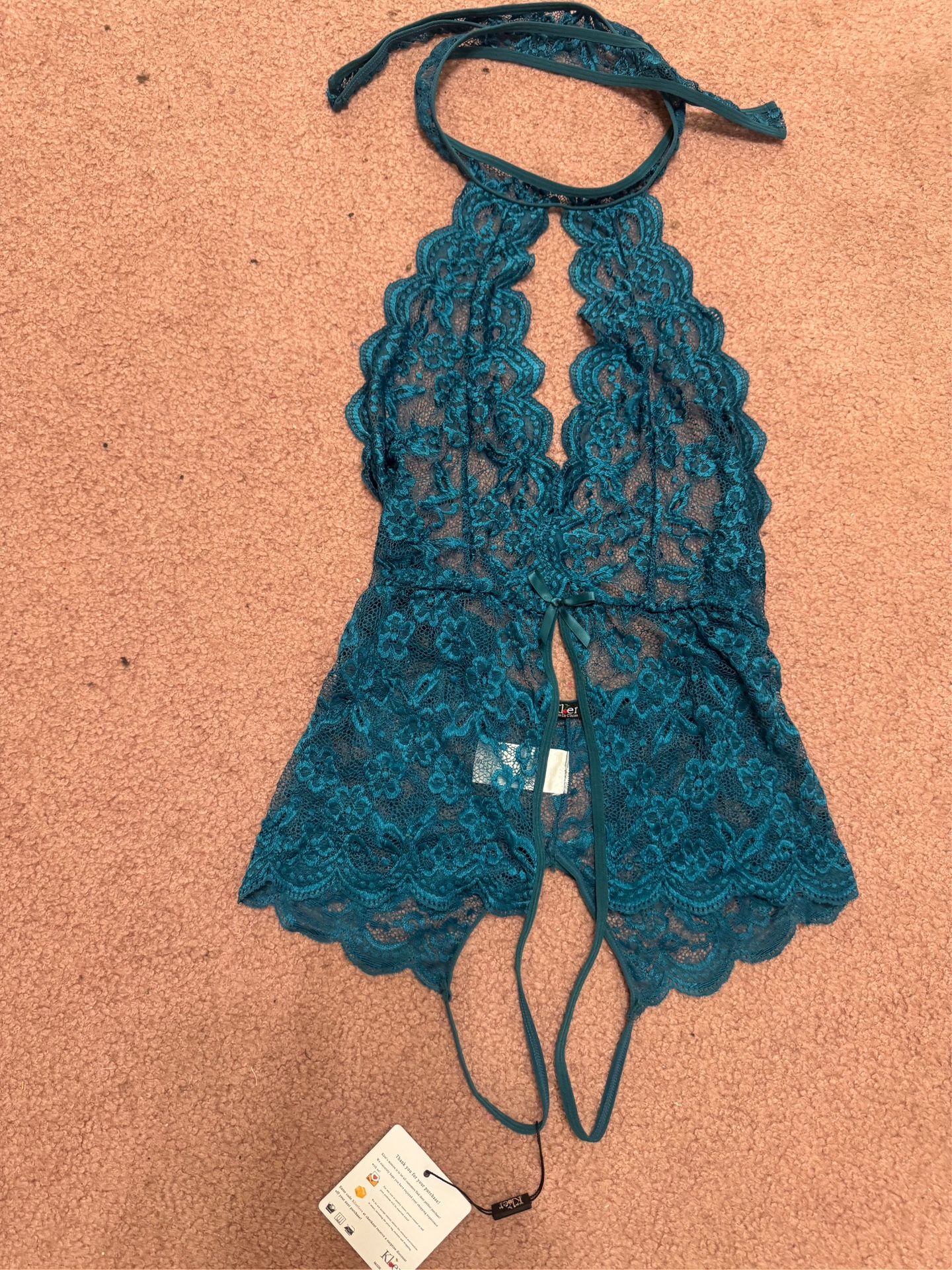 New small teal stretchy lace bodysuit lingerie panty halter