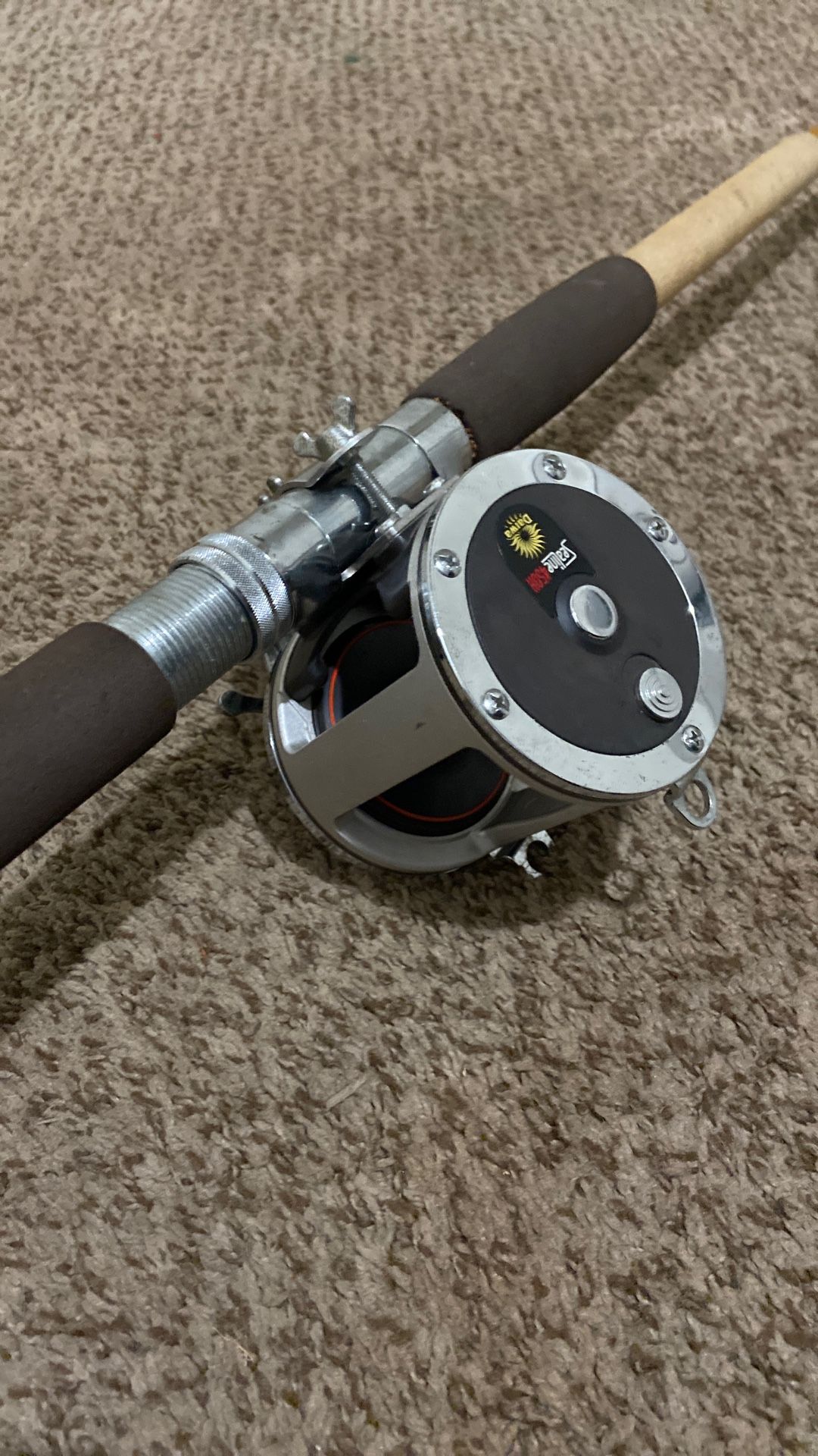 It’s brand new never used the brand of the pole is (Golden Sabre 7ft Line Test 30-100) . The Reel is a( Daiwa Sea Line 450H)