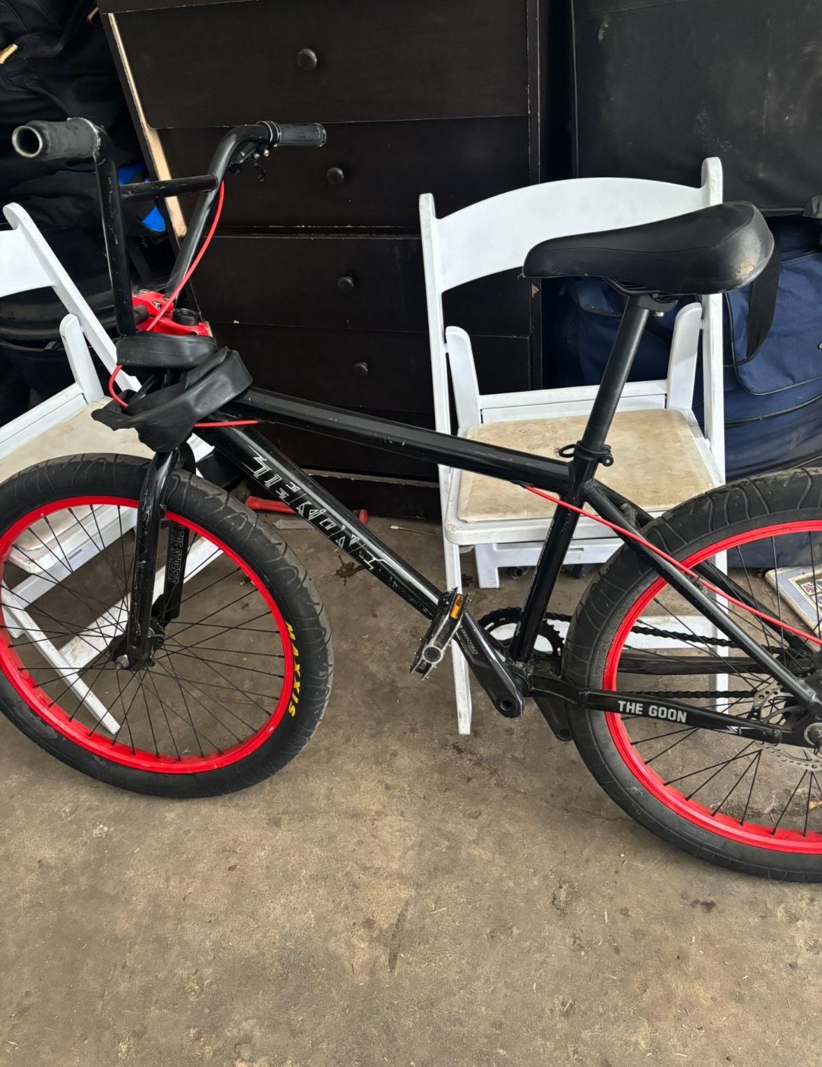 Just sitting in my garage no flats has front and back brakes and extra inner tube does have a couple of minor scratches Taking offer Or trade I ain’t gonna open your message if your low balling 🤝