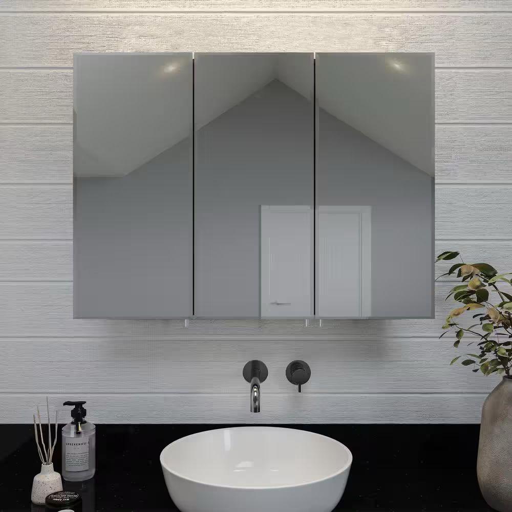 Croydex 30 in. W x 30 in. H x 5 in. D Frameless Tri-View Surface-Mount Medicine Cabinet with Easy Hanging System in White