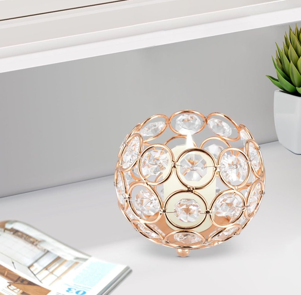 Crystal Bowl Tea Light Candle Holders, Tabletop Candle Holder Ball Tealight Candle Lantern for Table Decoration, Gold