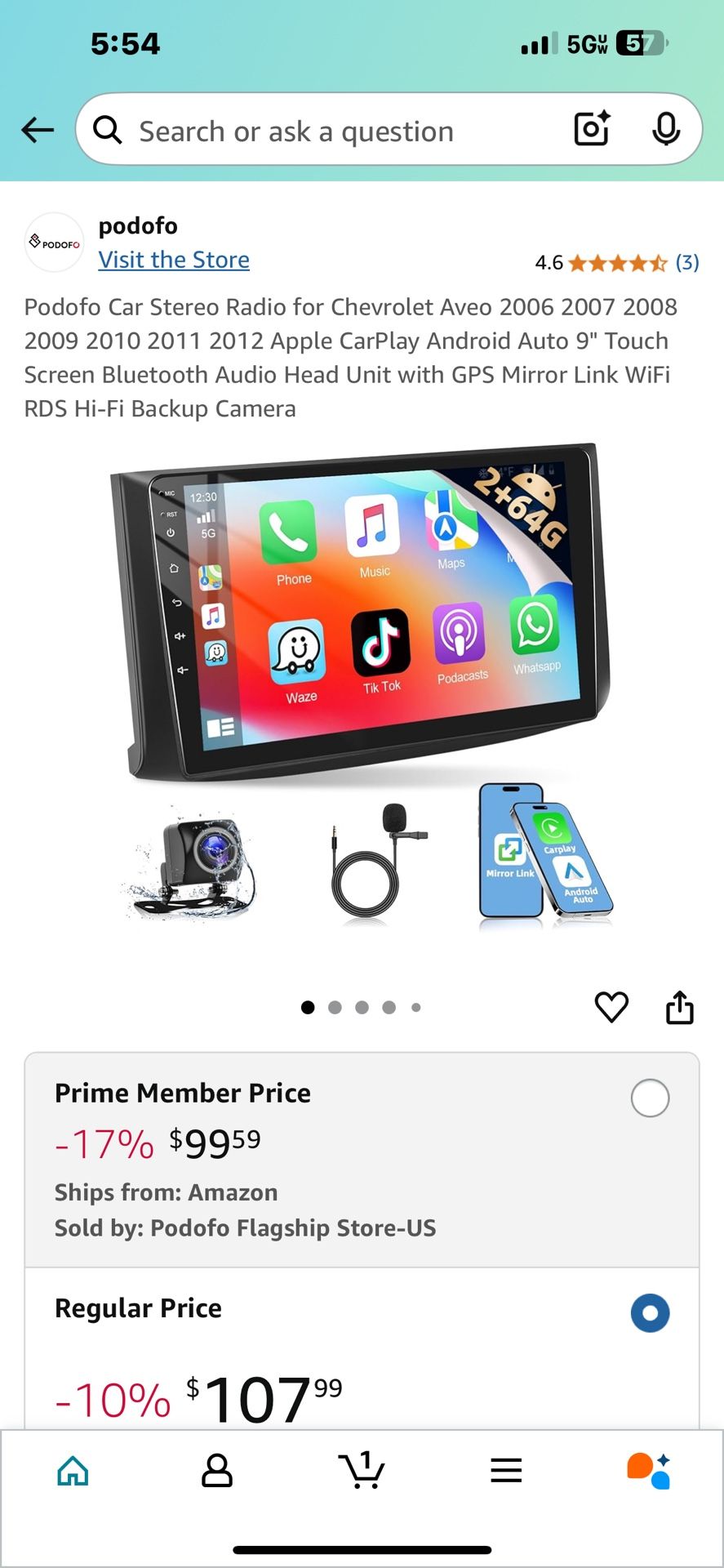 Radio for Chevrolet Aveo 2006 2007 2008 2009 2010 2011 2012 Apple CarPlay Android Auto 9" Touch Screen Bluetooth Audio Head Unit with GPS Mirror Link