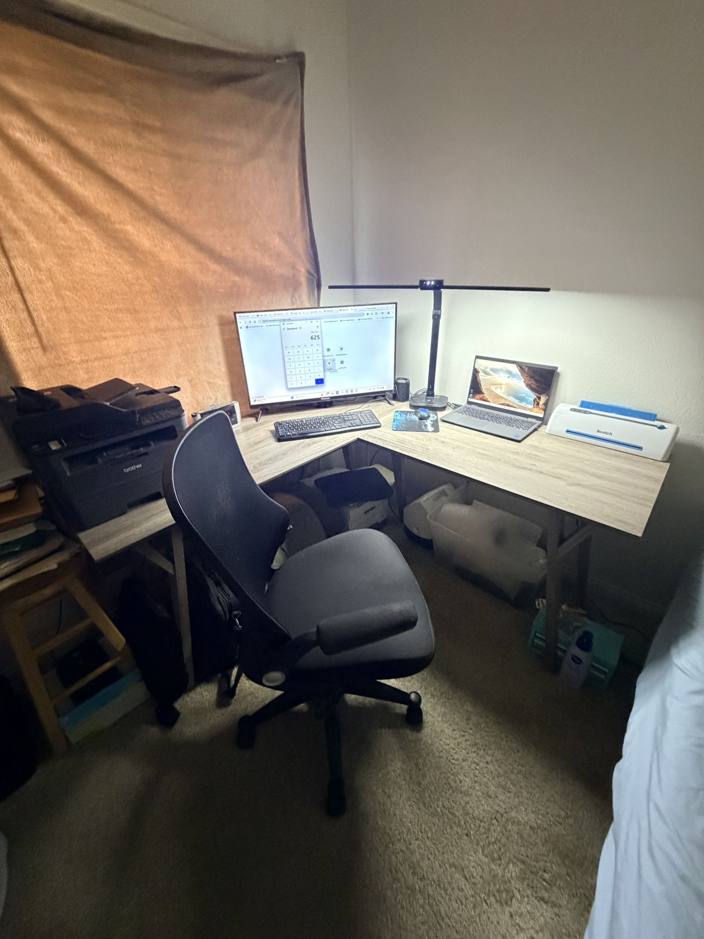 Top 62” x 62” each corner section W= 24” H= 30” *Includes rolling desk chair