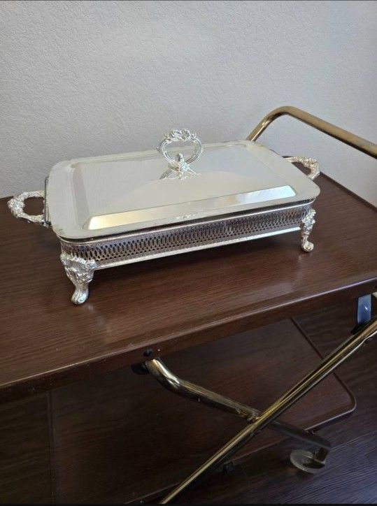 NOS Pyrex Baking Pan Dish Silver Serving Stand Chafing Dish