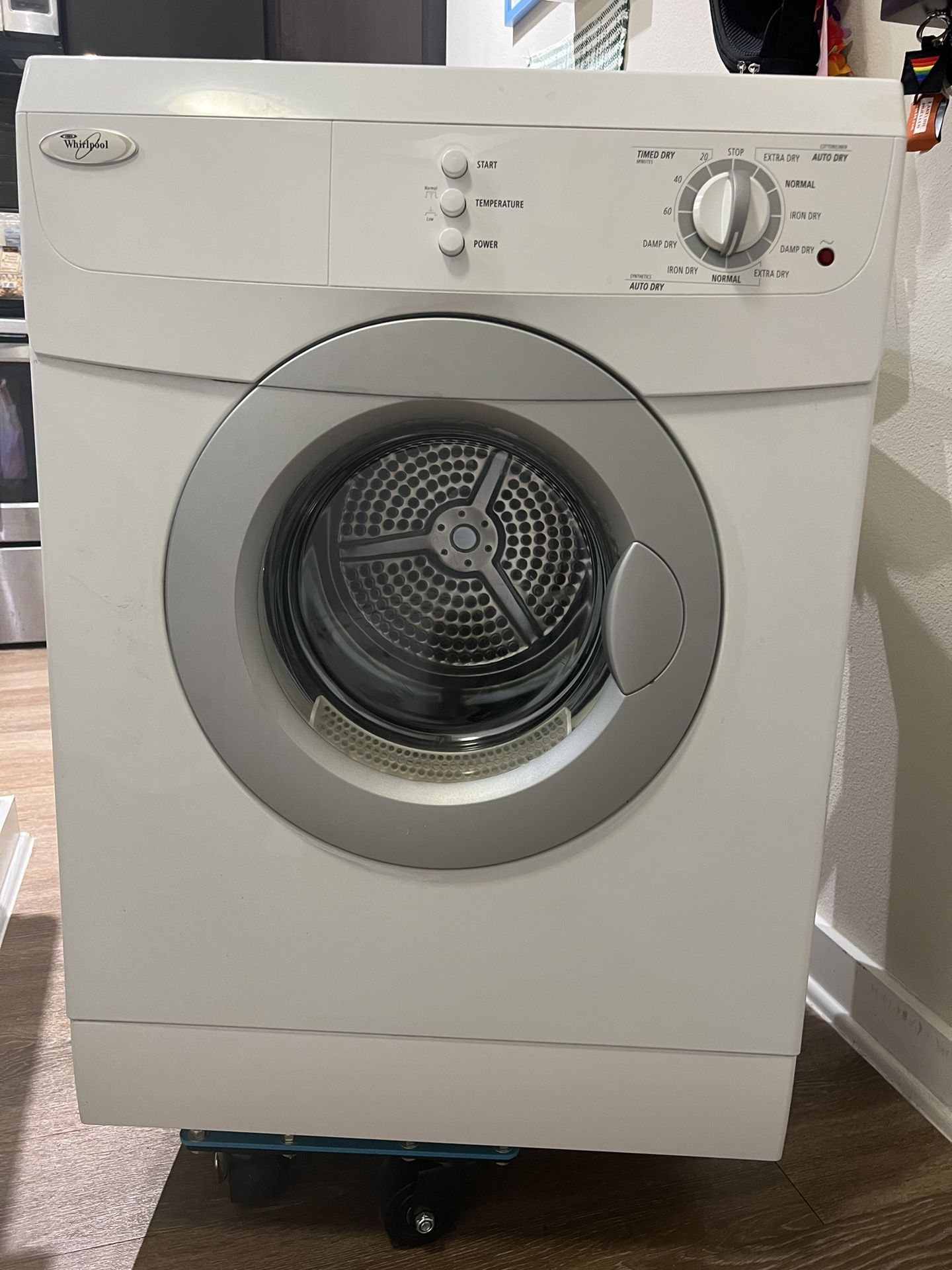 Whirlpool stackable dryer model WED7500VW, 3.8 cu.ft Compact Front Load Electric Dryer, sold as-is