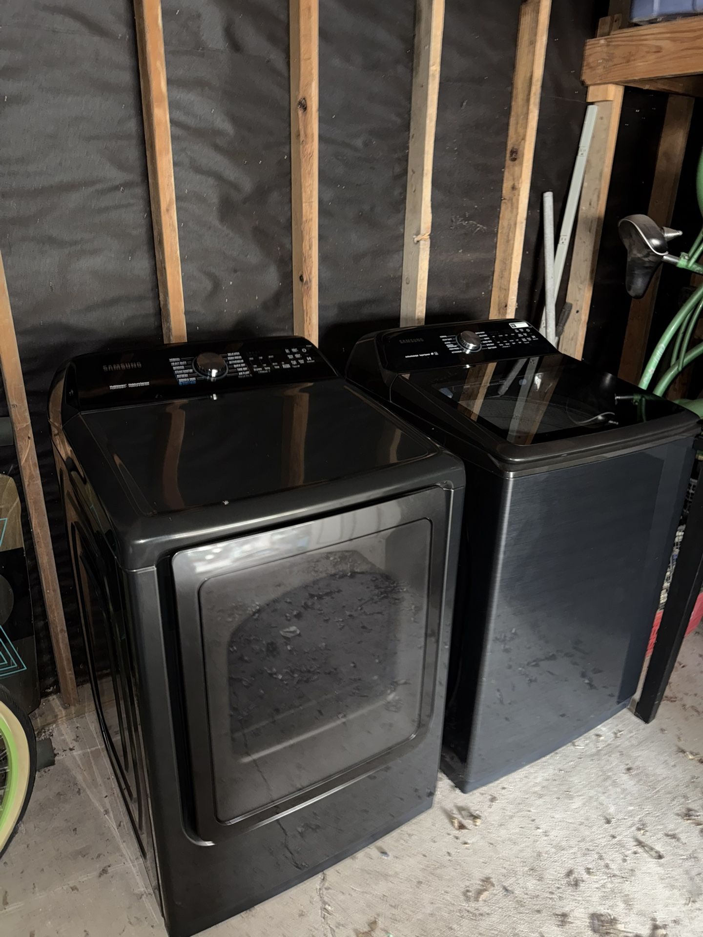 Samsung water jet washer and dryer set. Needed them for my apartment last year but just moved into a new complex that has their own washer and dryer. They work good as new! No damages!