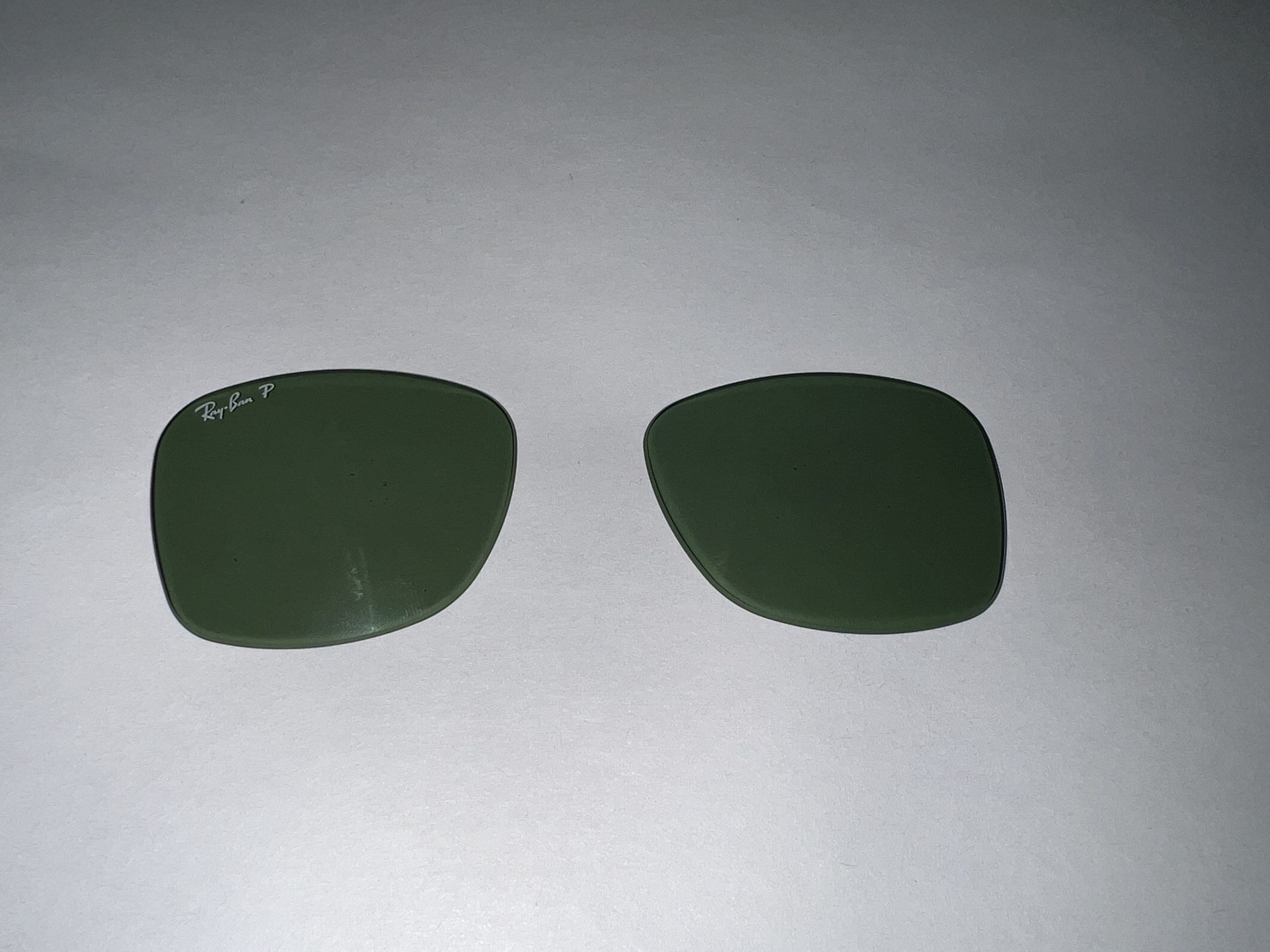 Selling this pair of polarized lenses for the Ray-Ban Classic Wayfarer (model 2140 as you can see in the picture). Perfect condition, no scratches. They are “2P” which is a little lighter shade of darkness than the “3P”, good for eye protection during cloudy days. Replaced these lenses with prescription lenses is the only reason I removed them from the frames. First $10 gets them!