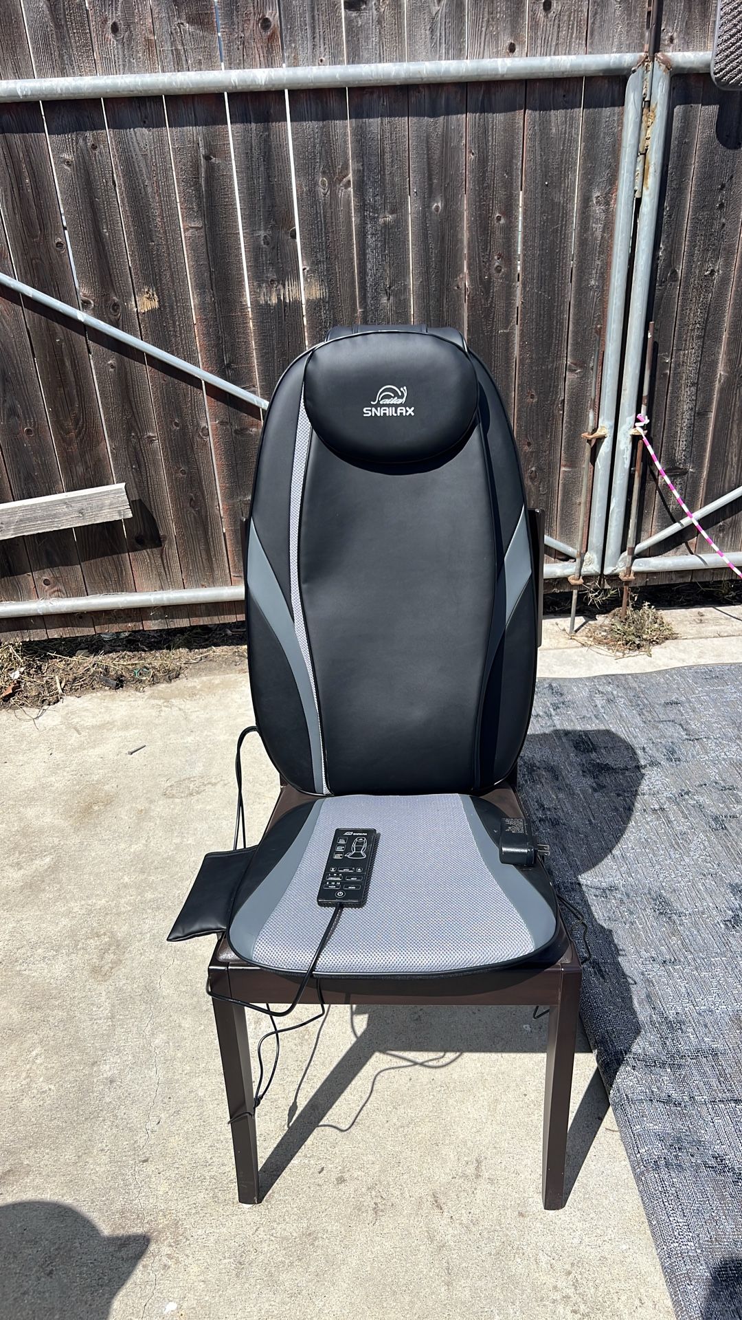 Turn any chair into a massage chair! This massage chair pad works great & fits perfectly on top of most chairs. Has a detachable back flap & head pillow that attach to the back by a velcro strip. Chair has an attached remote to control heat and massage functions. Sells for almost $100 on Amazon.