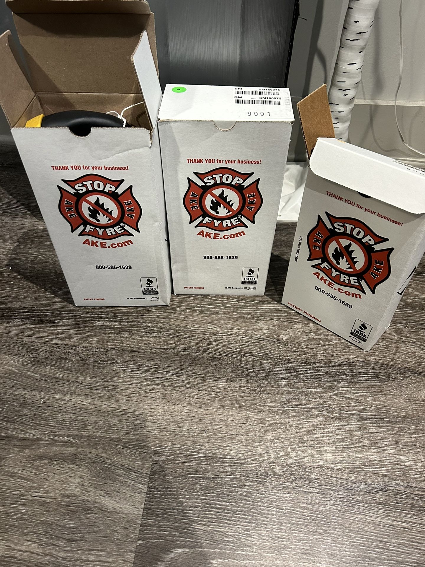 3 extinguishers. 1 mini 1 standard 1 high capacity Never used. Still In box. If you dont know how good STOP FYRE is please look it up. This bundle at retail price is 2400. I’m open to any serious offer