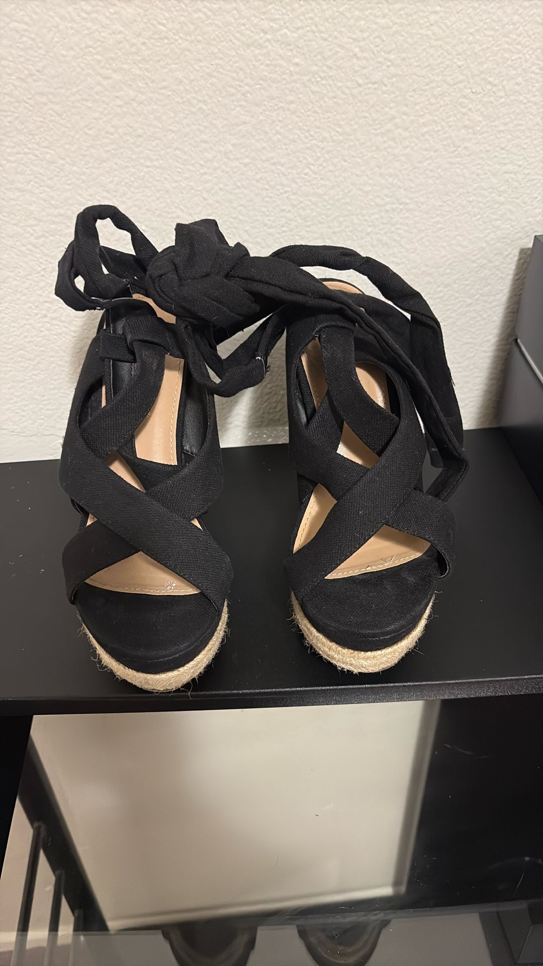 Tie Up Black Heels