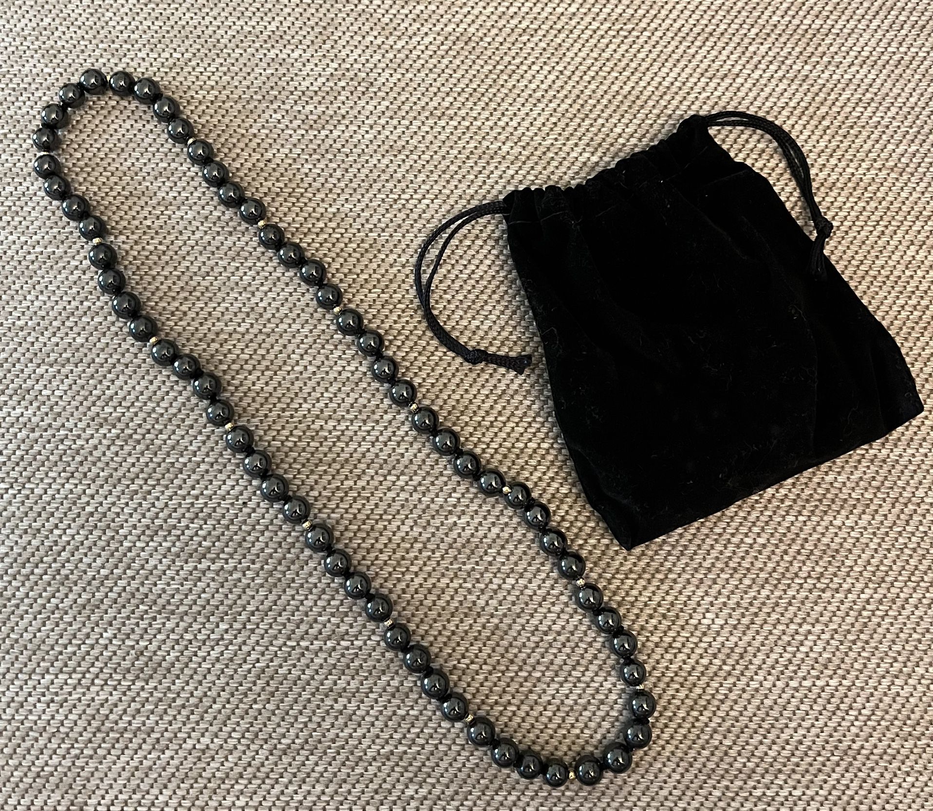Hematita Imantada tiene un efecto equilibrador y anclante en el cuerpo y la mente, ayudando a reducir el estrés y la ansiedad. Ayuda a equilibrar las energías y proporciona una sensación de estabilidad emocional y física. COLLAR Y PUEDE PONERSE COMO PULSERA. Magnetic Hematite has a balancing and grounding effect on the body and mind, helping to reduce stress and anxiety. It helps balance energies and provides a sense of emotional and physical stability.