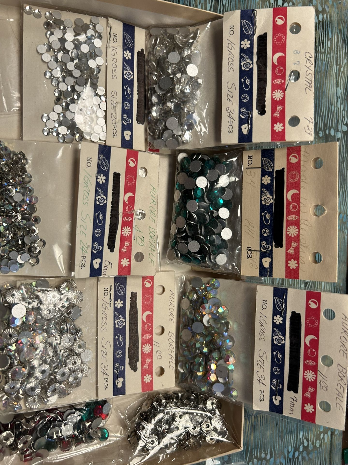 Have eight packages of different flat back crystals Selling as a lot, not individually