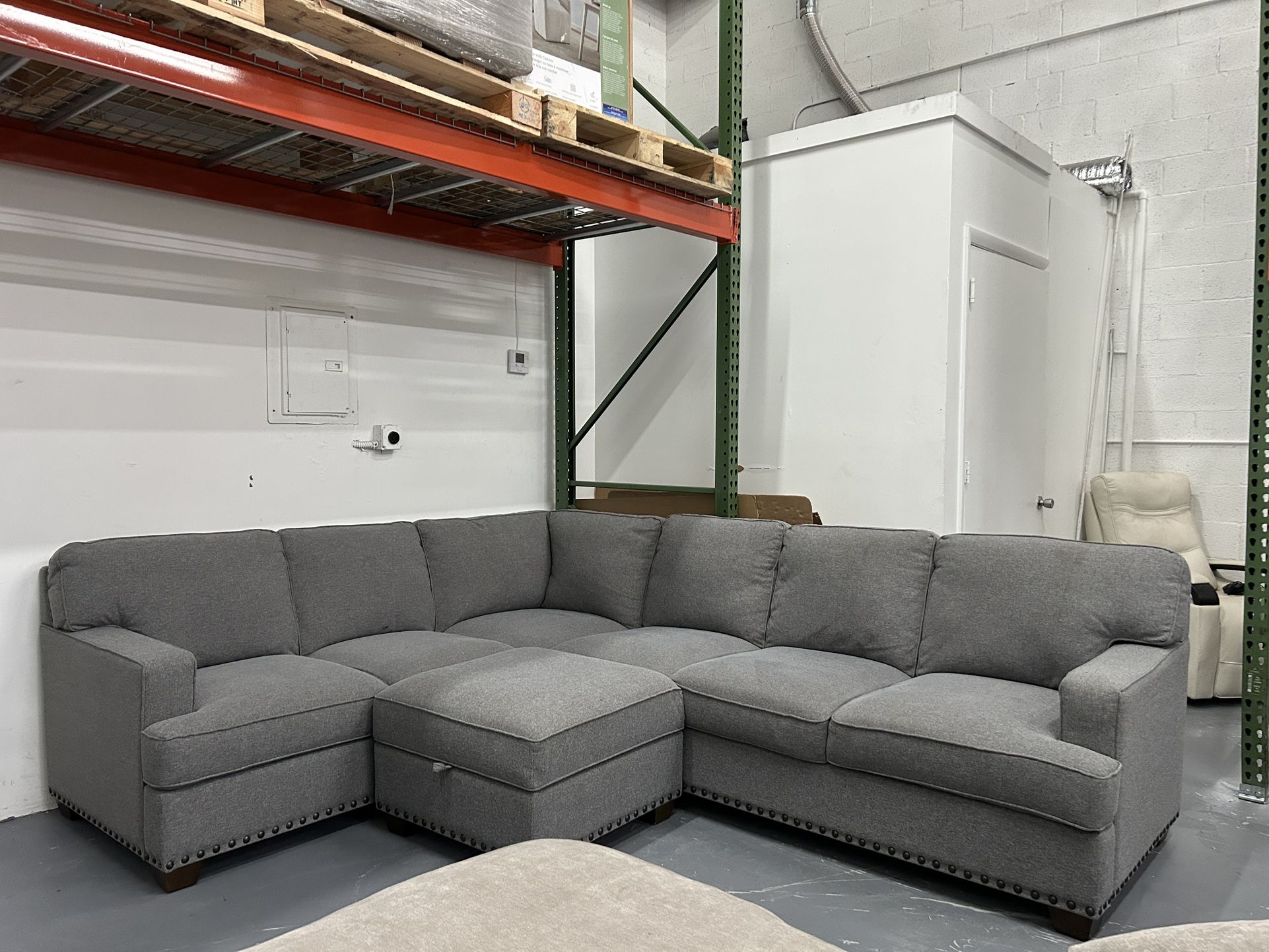 Delivery Options in South florida. Taxes are not included in this publication and will be calculated at payment. Color: Gray 100% Polyester Fabric Sinuous Spring Suspension Pocket Coil Seat Cushion Storage Ottoman
