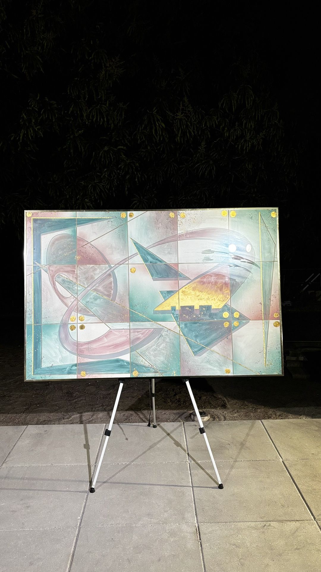 Pickup or delivery available. Large signed abstract geometric painting featuring soft pastel tones, gold accents, and a modern grid-style design. A unique statement piece that adds a contemporary, artistic touch to any space. Came from a clean, non-smoking home and is in excellent condition. Perfect for: • Living rooms • Offices • Bedrooms • Studios • Airbnb or modern interiors Details: • Signed artwork • Abstract geometric style • Large statement size • Soft pastel color palette with gold accents • Excellent condition • Ready to hang • From non-smoking home Price: $100 OBO Discounts available when buying multiple paintings. Message me for quick pickup or local delivery.