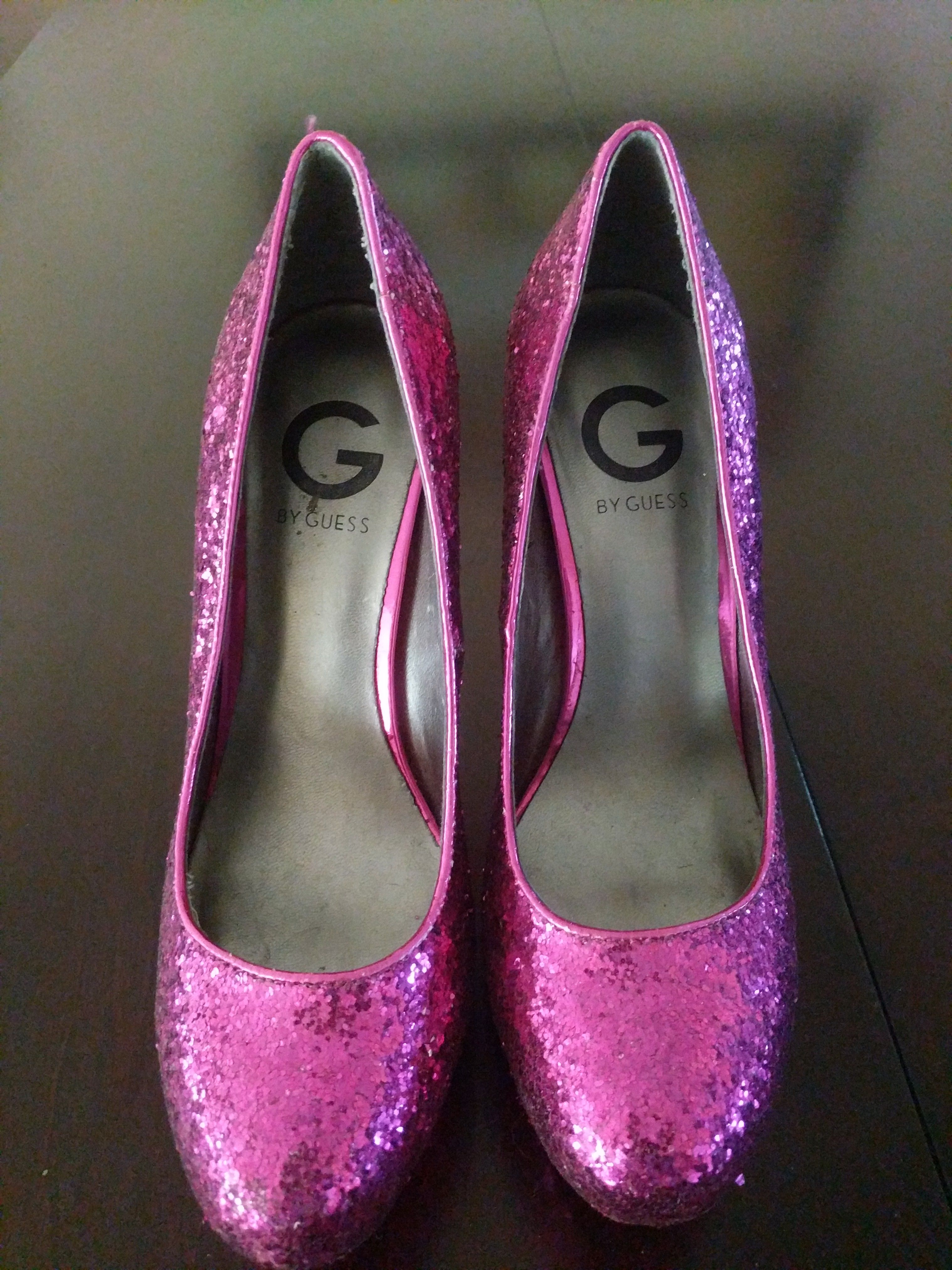 Beautiful hot pink glitter pumps for any special occasion. Some wear at the bottom of the shoes but otherwise gently used.