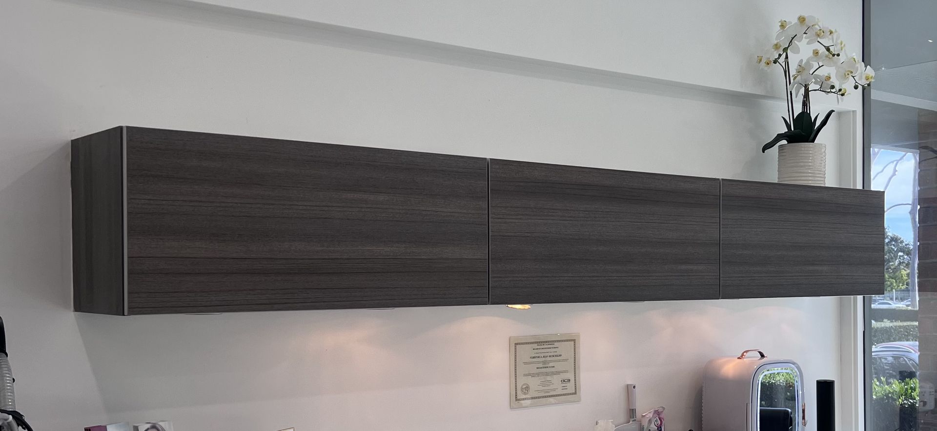 Poggenpohl Designer Wall-Mounted Cabinet Set – 3 Floating Units (Modern European Luxury) Elevate your space with an authentic Poggenpohl wall-mounted cabinet system—one of the world’s most prestigious German kitchen brands, known for precision craftsmanship and architectural design. This offering includes a 3-piece floating cabinet set in a sleek, modern wood veneer finish, originally installed as part of a Newport Beach showroom display (Pilgrim Pool area). The clean, handleless design delivers a refined, minimalist aesthetic ideal for kitchens, offices, medical or aesthetic practices, or contemporary interiors. Details: Brand: Poggenpohl (Germany) Quantity: 3 wall-mounted cabinets Finish: Modern wood veneer (dark taupe/grey tone) Hardware: Premium Blum soft-close lift system (20K270x) Dimensions: 35”L x 15”H x 13”D (each piece) Origin: Newport Beach showroom installation (2008) Condition: good – light cosmetic wear consistent with professional display use Features: Floating, wall-mounted design for a high-end architectural look German-engineered construction and durability Soft-close lift-up doors with premium Blum hardware Versatile application (kitchen, office, treatment room, storage feature wall) These cabinets were part of a professionally designed installation and represent a rare opportunity to own luxury European cabinetry at a fraction of original retail cost. Pricing: $2500 (open to reasonable offers) Location: Newport Beach Buyer responsible for transport Comparable Poggenpohl cabinetry systems retail for tens of thousands—this is a premium set priced competitively for the Southern California market. Serious inquiries only.