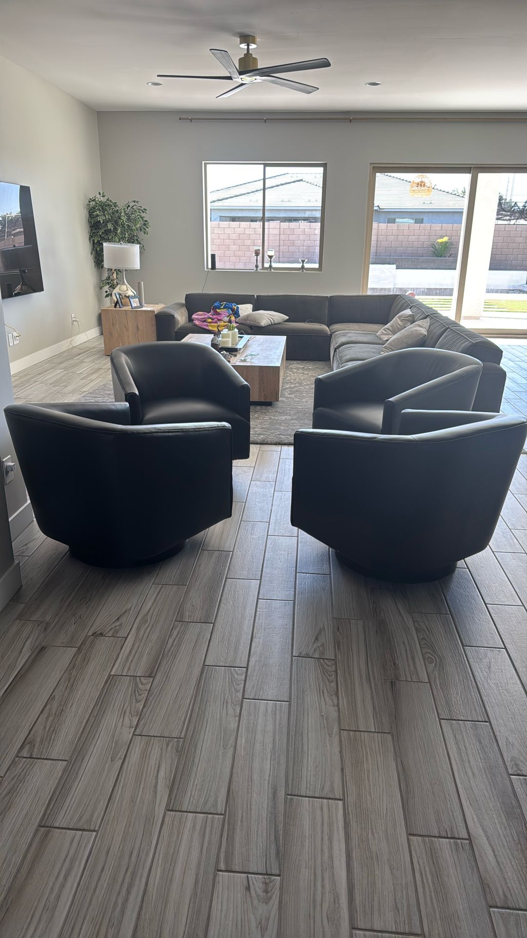 Four AllModern Vegan Leather Swivel Chairs – Like New Selling a set of four premium AllModern swivel chairs upholstered in vegan leather. These chairs are in pristine, like-new condition — they’ve never been used and have been sitting in a rarely used bar room since purchase. Sleek, modern design that fits dining rooms, kitchen islands, or home bars Smooth swivel function for easy movement Durable vegan leather that’s easy to clean Sturdy, comfortable, and stylish Perfect for anyone looking to elevate their space with high-quality, modern seating at a great price.