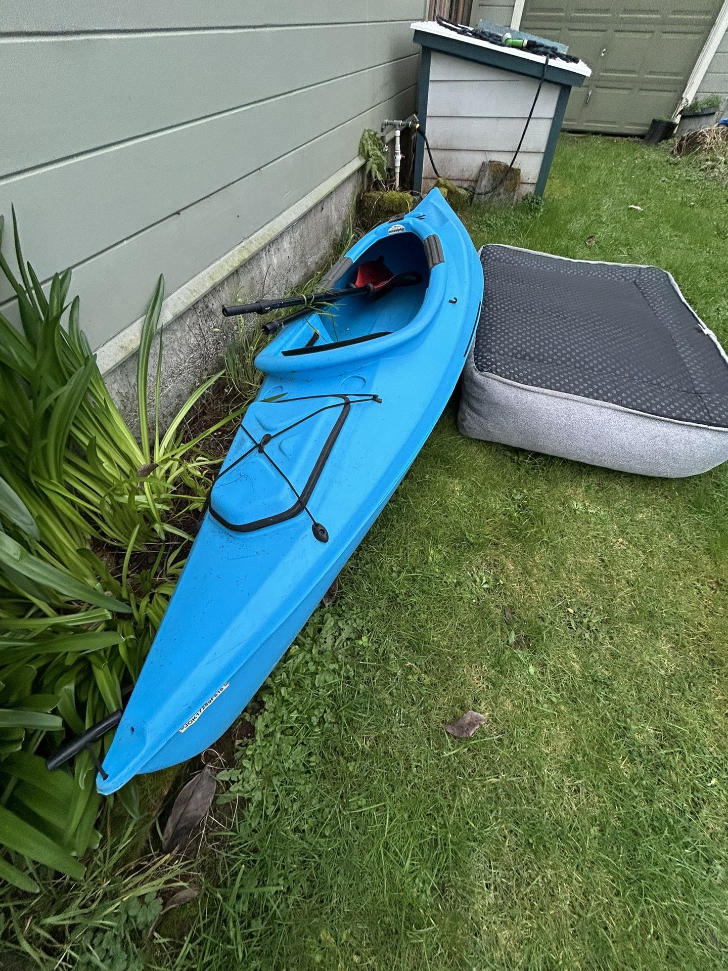 Single-person sun dolphin kayak in great shape, just one small indent on the bottom but I haven’t noticed that to cause any issues. Easy to transport, paddle available, $150 for kayak and paddle. Great little kayak, just haven’t used it as much as I had hoped.