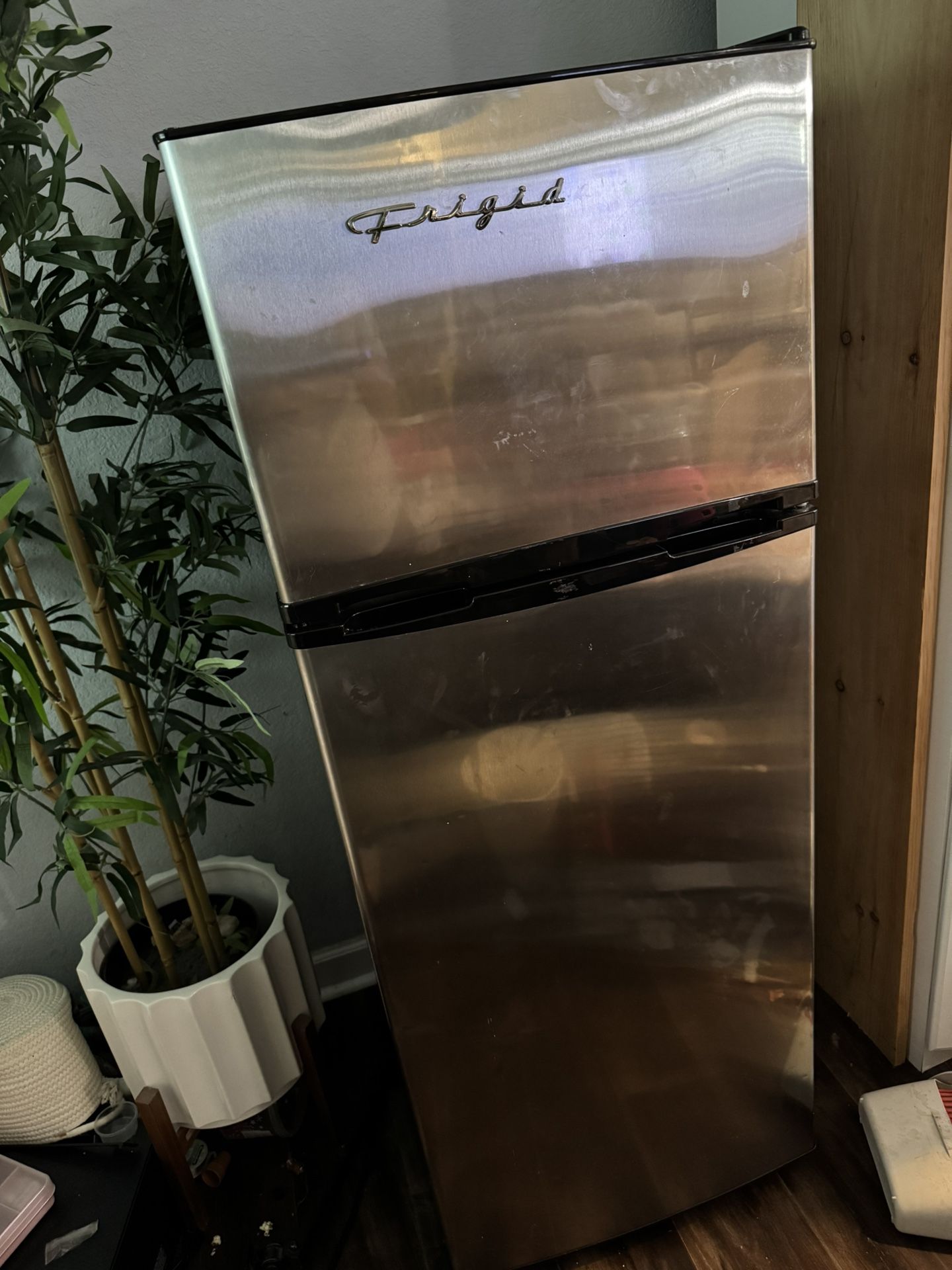 Works well, no longer needed. Bottom door shelf is broken as shown in picture