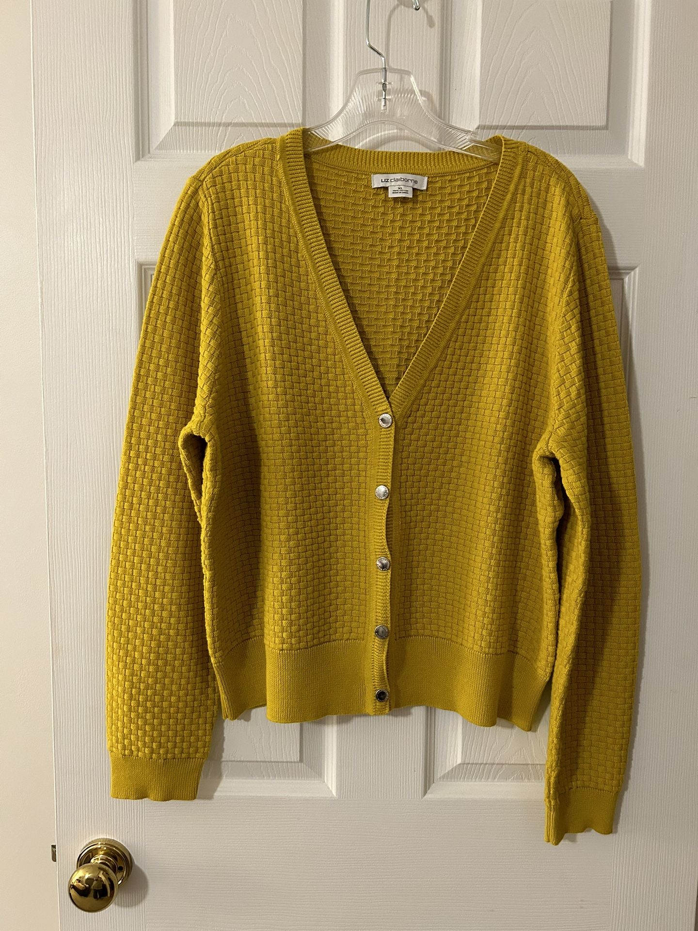 Liz Claiborne Cardigan Sweater Mustard Yellow size XL with snap closure