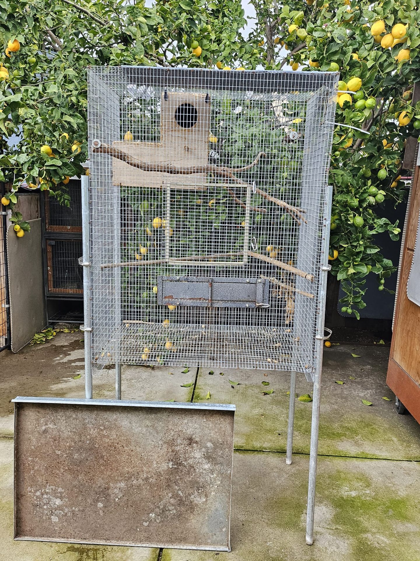 Large Aviary Cages. Best for medium sized parrots as the holes in each panel are 1/2 inch X 1 inches in diameter. Dimensions: 36'' X 45'' X 24''. With lets 75'' tall. Made with English 8 gauge wire. 150.00 firm.