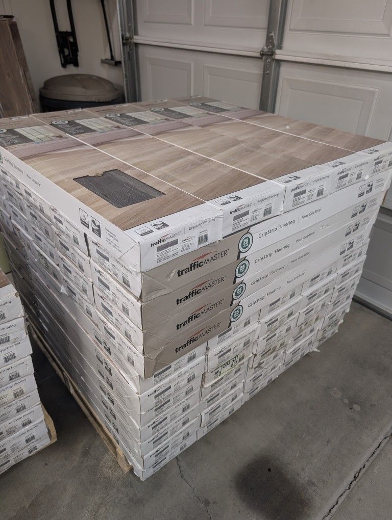 Alberta Spruce 4 Mil x 6" x 36"L Grip Strip Water Resistant Luxury Vinyl Plank Flooring. Ceramic Bead Surface Coating Resists Scratches and Stains. Can be Installed over Concrete, Tile, Vinyl or Wood Flooring. Easy DIY Grip Strip Installation. 32 NEW BOXES = 768 SQ FT More Available if Needed. More Flooring under my offers. Located @101& Union Hills