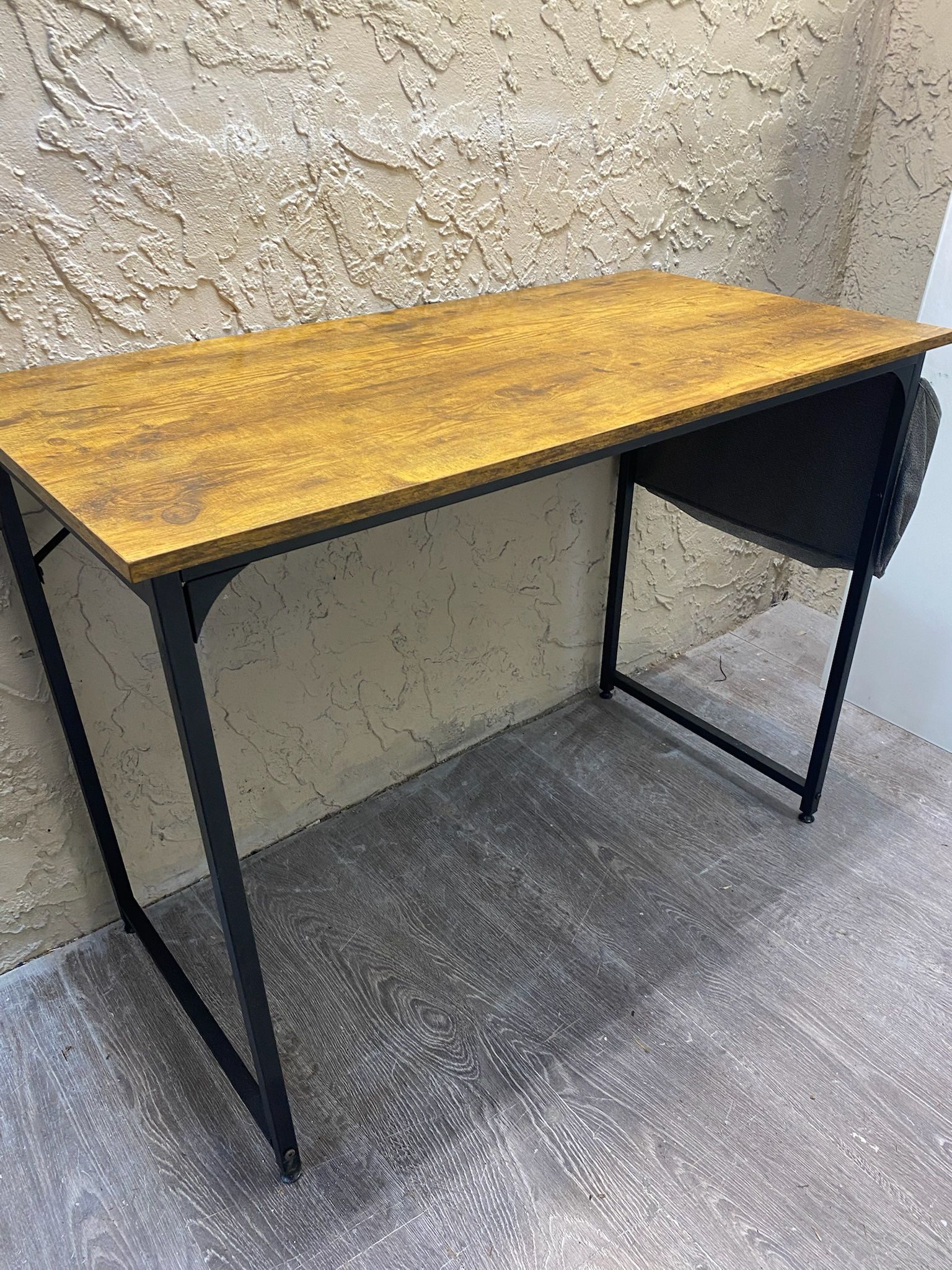 Sleek desk with wood grain top. Has black metal frame. Great for home office or study space. H 29 1/2 W 39 1/2 D 19 3/4 Local Delivery Available for an Additional Fee See My Other Items π