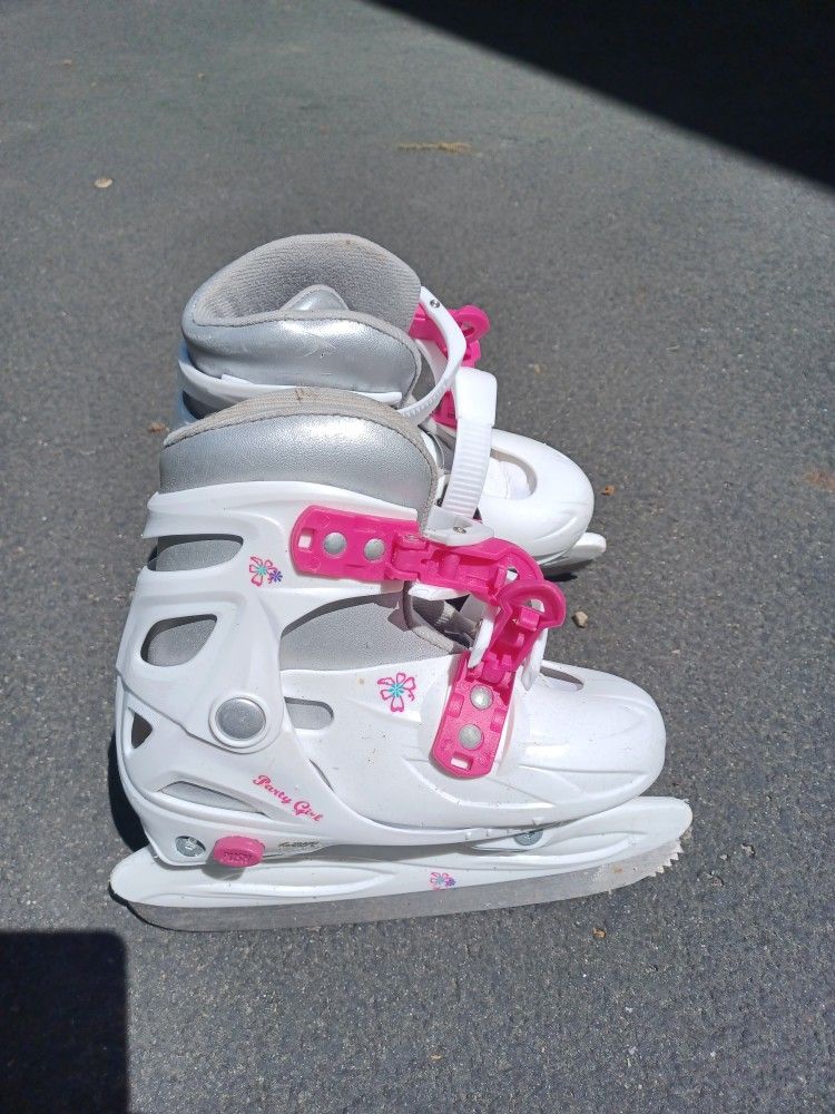 Size J10-J13 adjustable, only used for ice skating lessons a few times. Can be delivered for a small fee within 10 miles.