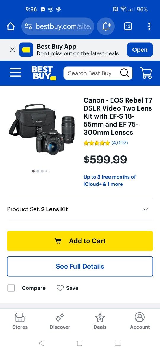 Canon - EOS Rebel T7 DSLR Video Two Lens Kit with EF-S 18-55mm and EF 75-300mm Lenses, Camera Bag