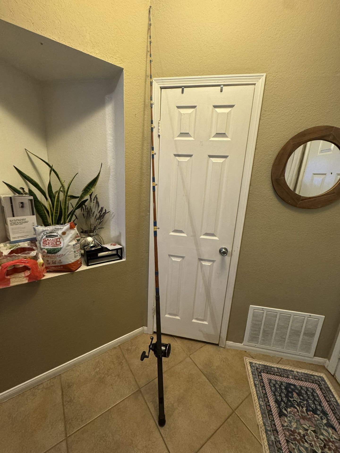 Beautiful rod just needs to be re gripped 8.5’ seeker cal coast special and penn caster reel 555 Works wonders