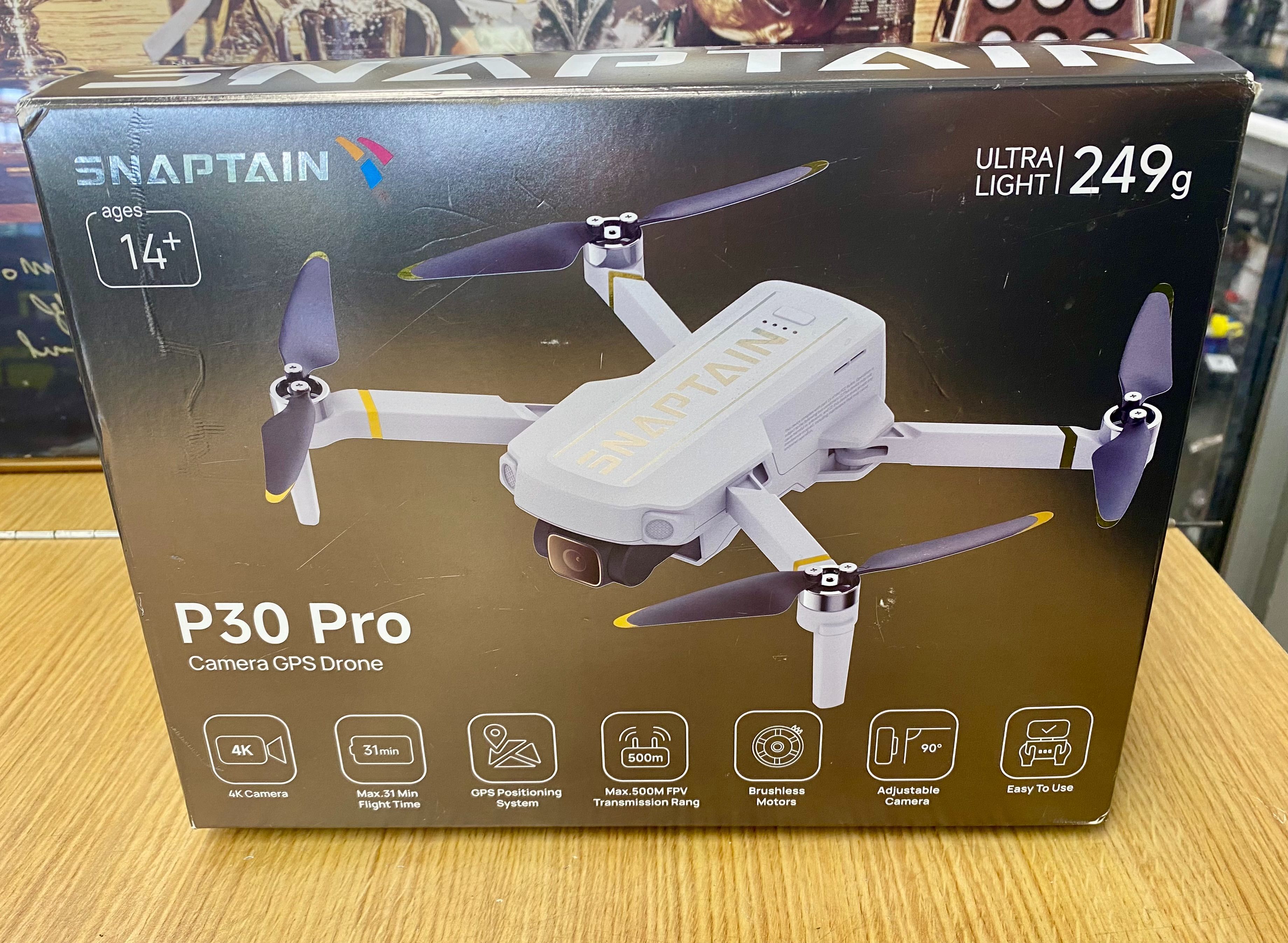 SNAPTAIN P30 Pro Camera GPS Drone in new open-box condition. The drone has been tested and functions perfectly. Excellent option for beginners or anyone looking for an easy-to-fly GPS drone with strong features. 🔹 Key Features 4K Camera with adjustable angle GPS Positioning System (return-to-home & stable flight) Up to 31 minutes flight time Brushless motors (smooth and quiet) FPV transmission up to 500 meters Ultra-light 249g (no FAA registration required for recreational use) Very easy to use, great for first-time pilots 📦 What’s Included Snaptain P30 Pro Drone Original retail box Original accessories (as shown in photos)