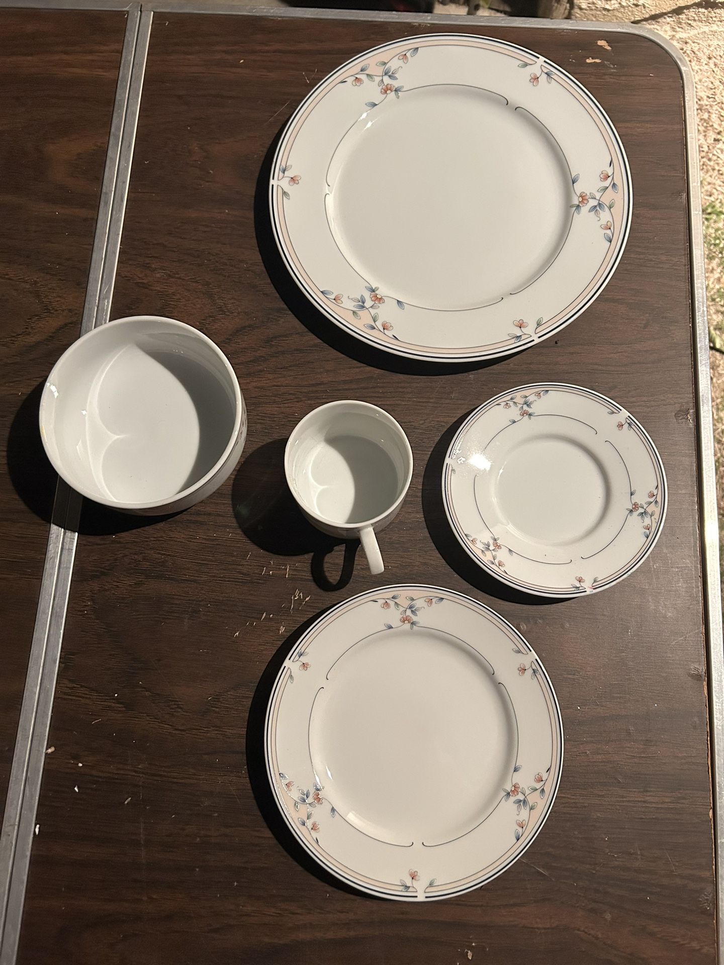 One set of Princess house “heritage bloom” Fine Porcelain set comes with 1 tea cup 1 tea plate 1 bowl 1 salad plate 1 dinner plate Dm me for details Offers welcome