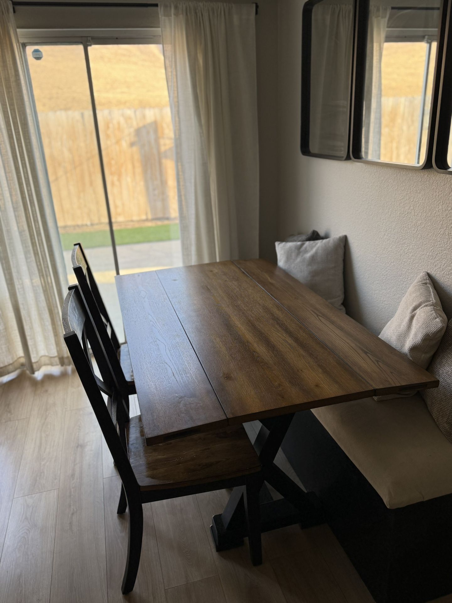 Table folds to save space 59” x 35.5” @ 30” high Table sold with chairs but willing to sell separately