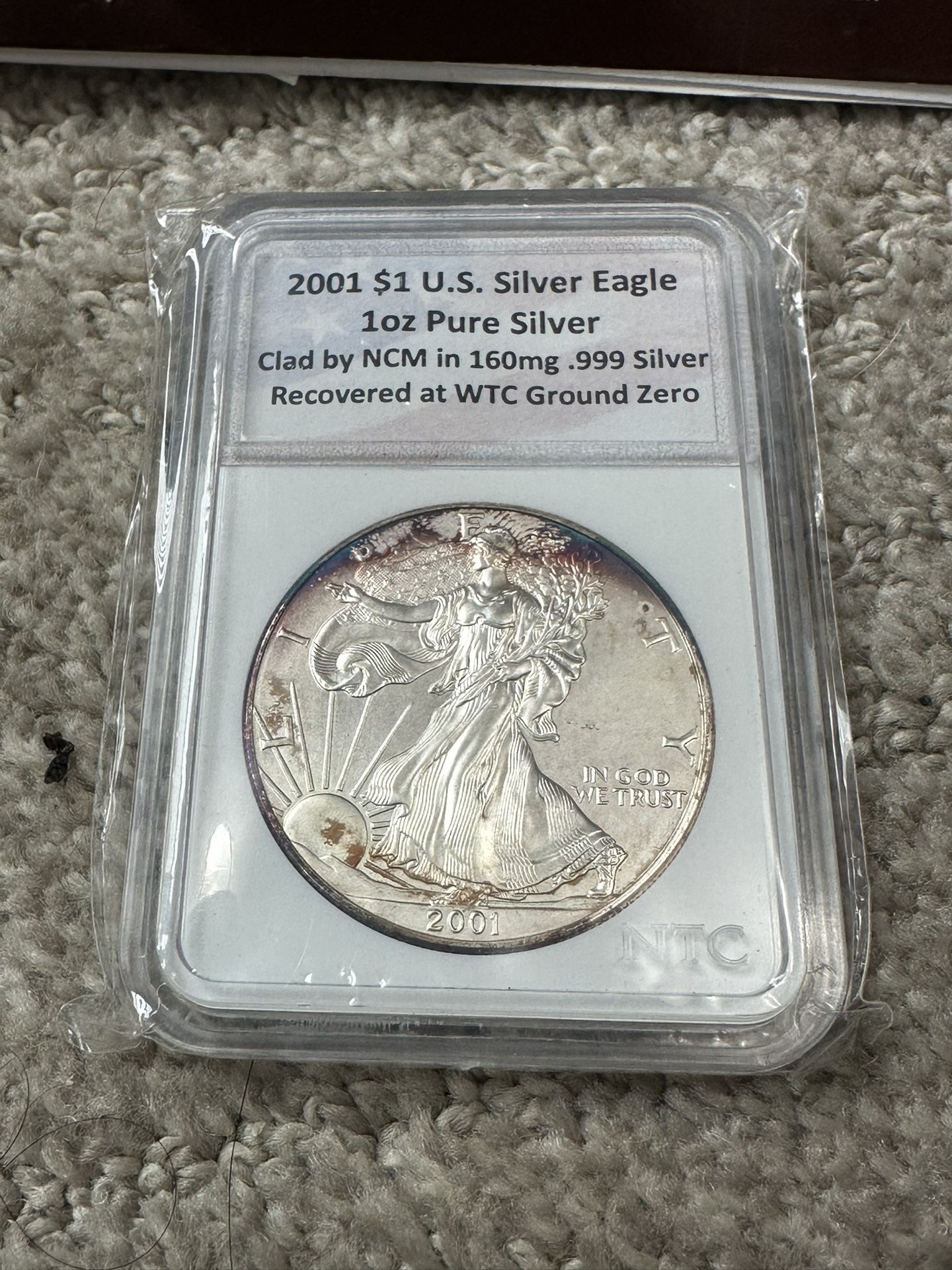 2001 $1 U.S. Silver Eagle 1oz Pure Silver .999 Recovered At WTC Ground Zero π¦ OPEN TO TRADES π¦ Looks Like Blood Stained & Amazing RAINBOW π TONES