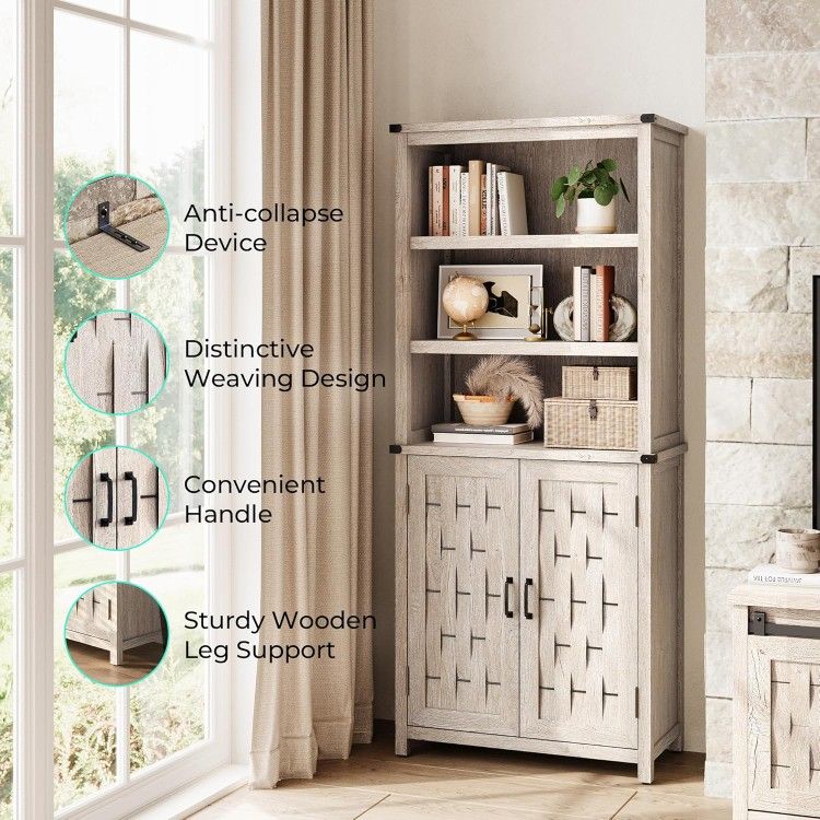 Farmhouse Bookshelves and Bookcases with Doors, 72 in Floor Standing 6-Tier Display Storage Shelves, Tall Bookcase for Home Office, Living Room, Libra