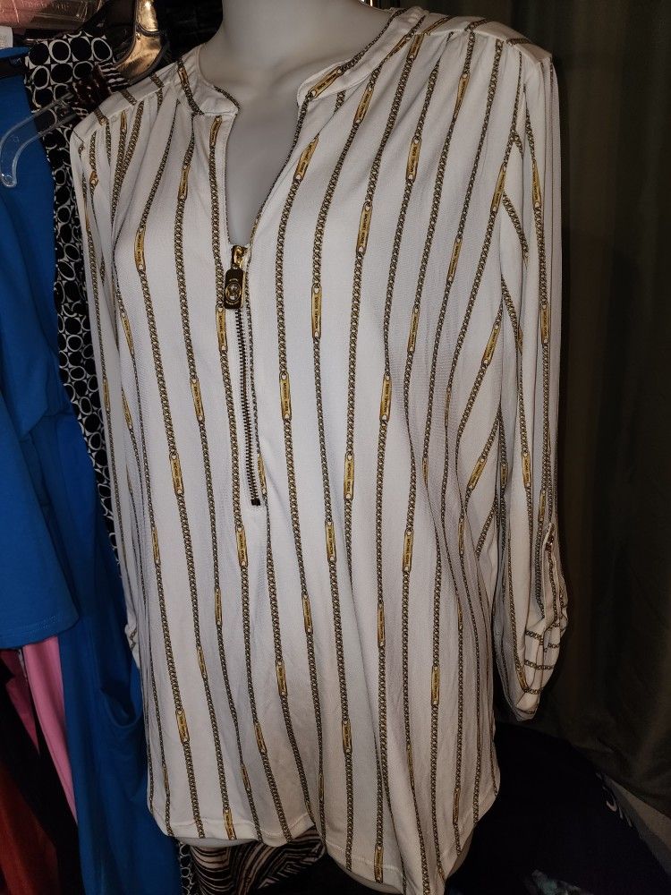 ichael Kors Bone & Gold Designer Top, new with tags. Gold zipper with MK logo pendent. Convertible sleeves. $30. Front Door Pickup or Shipping Available... Ocala, FL. 34475